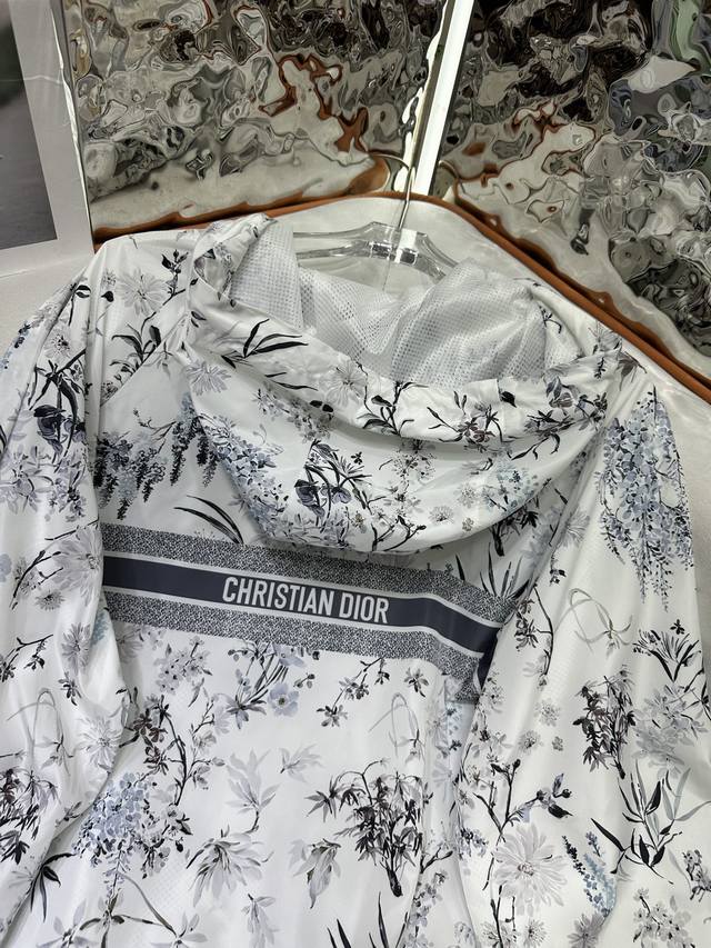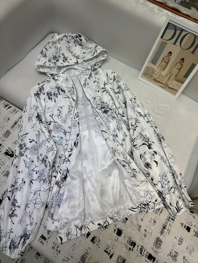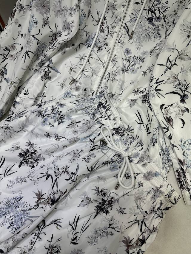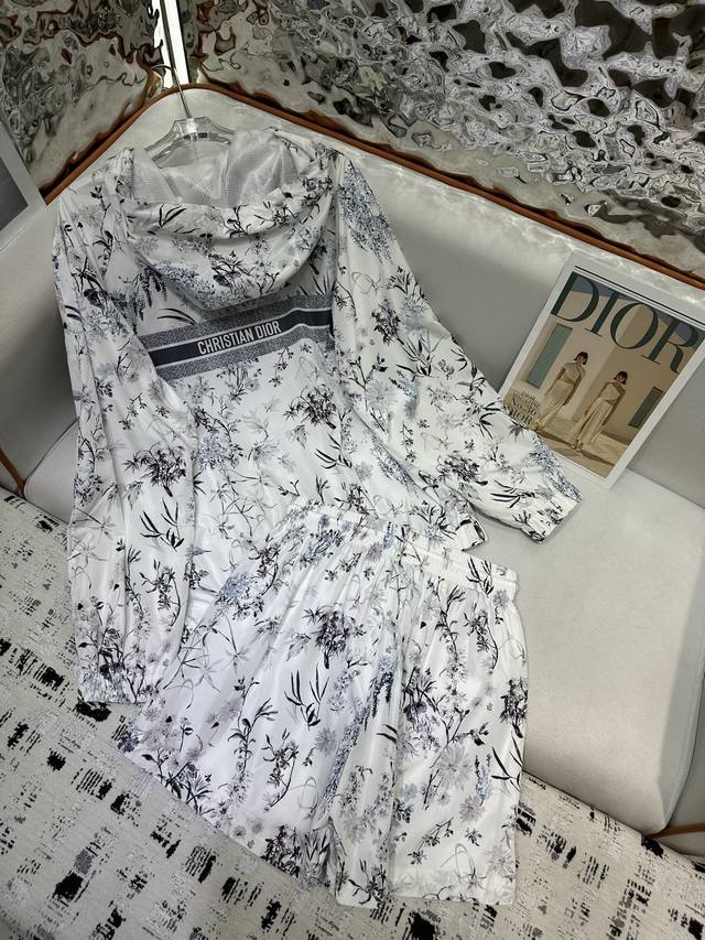 dior Printed Hooded Sun Protection Jacket + Shorts Set With Delicate Texture