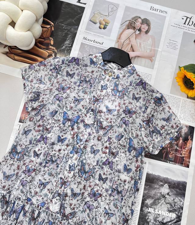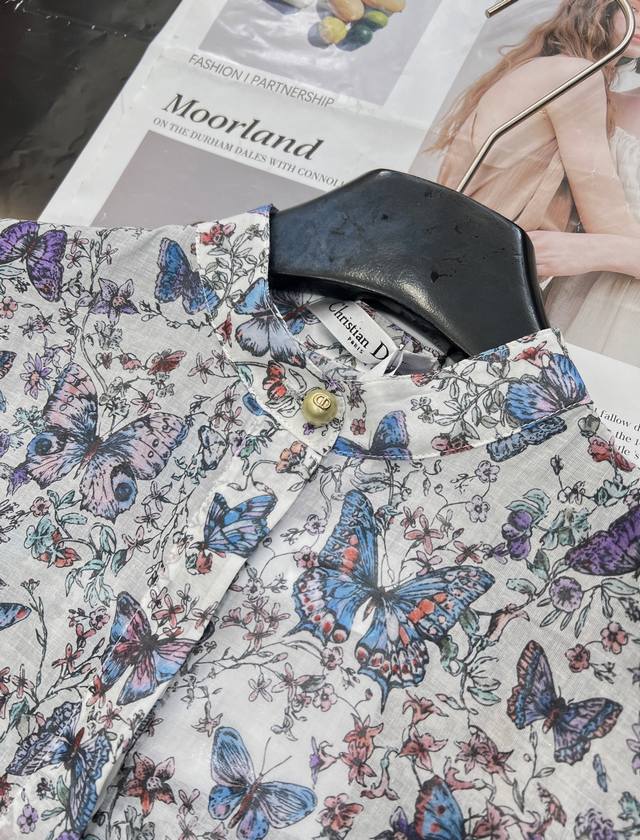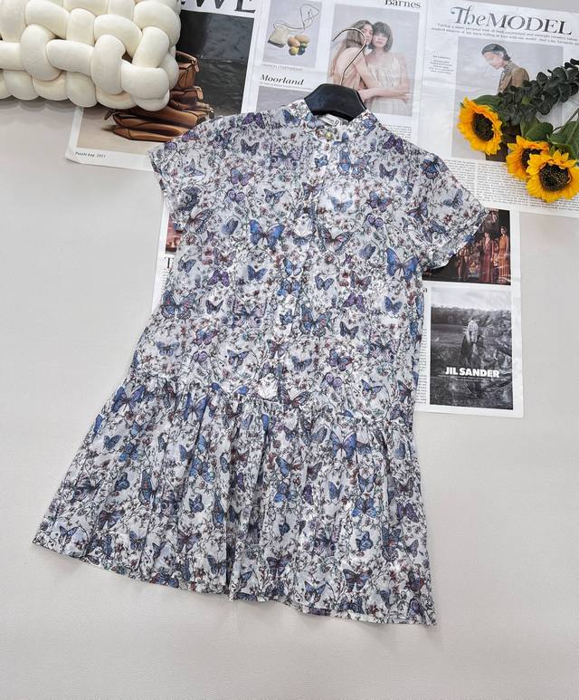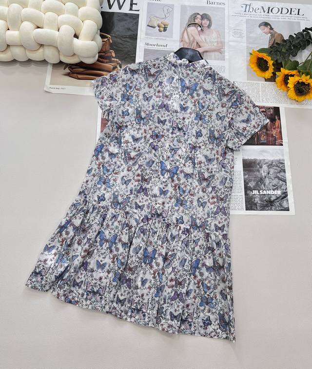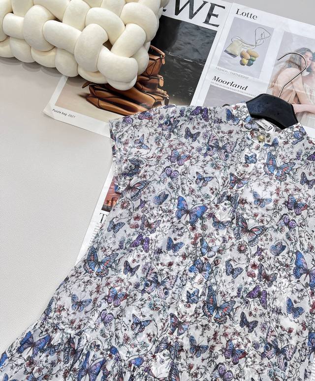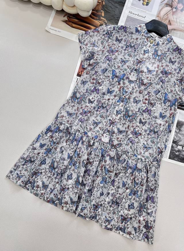 dir2025Ss New Printed Puff Sleeve Dress Uses Customized Yb Twill Cotton Fabri