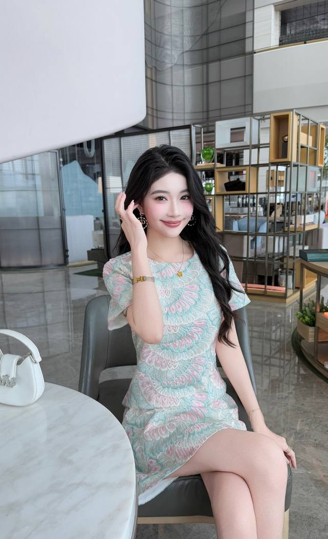 Dress Blue Apricot S-Xxl 2025 Spring And Summer New High-End Atmosphere Heavy Em