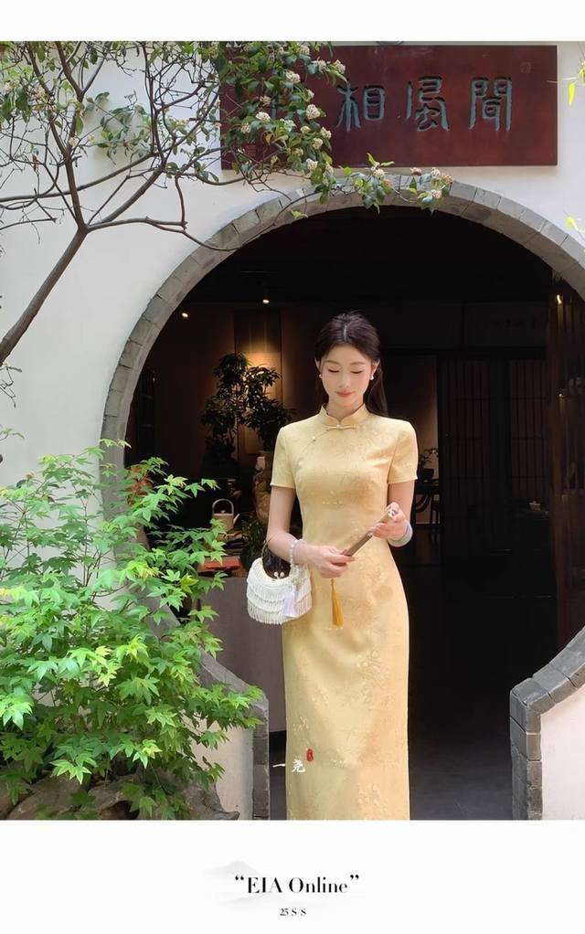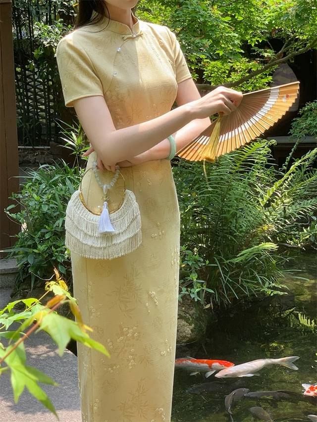 Heavy New Arrival, Invincible Hit, Super Low Running Price, Niao Niao Jiangnan New Chinese Style, Custom Dark Pattern Jacquard Fabric, Retro, Gentle, Beautiful, Temperament, Waist, Slim, Cheongsam Dress, Famous Family, Lady, Scholar, The Whole Piece Of Sewing And Hemming Craftsmanship Details Show High-End Quality, Single Color, Four Sizes Sml Xl