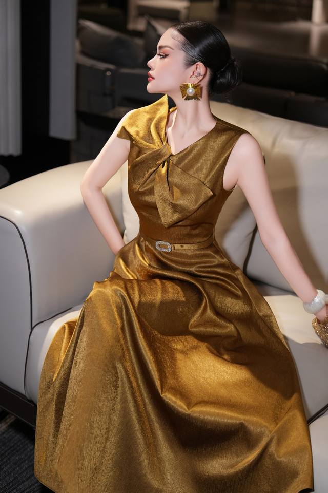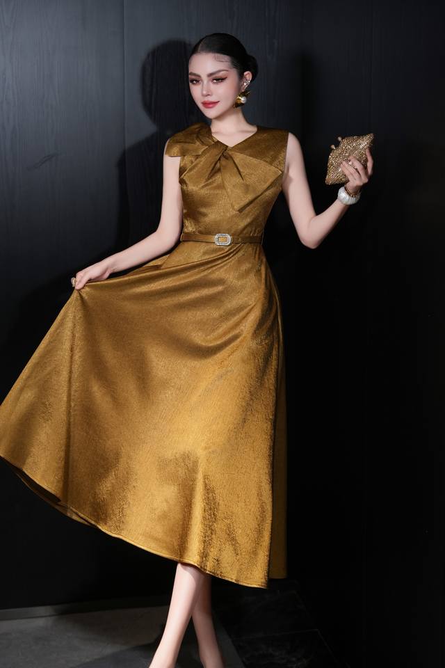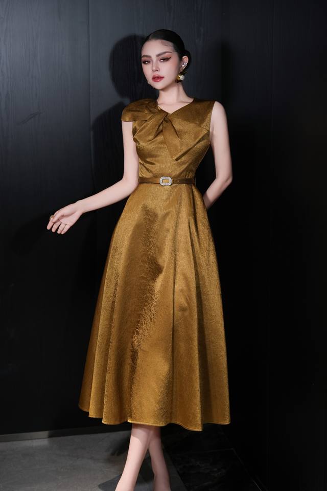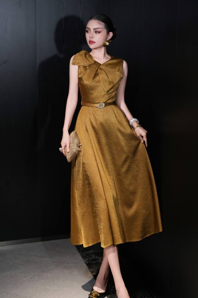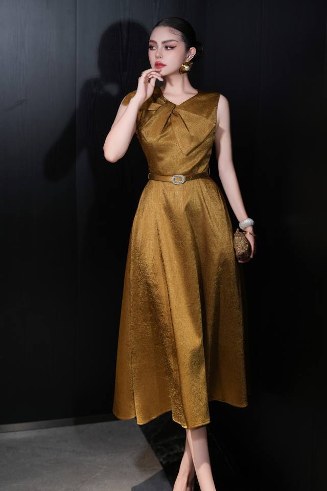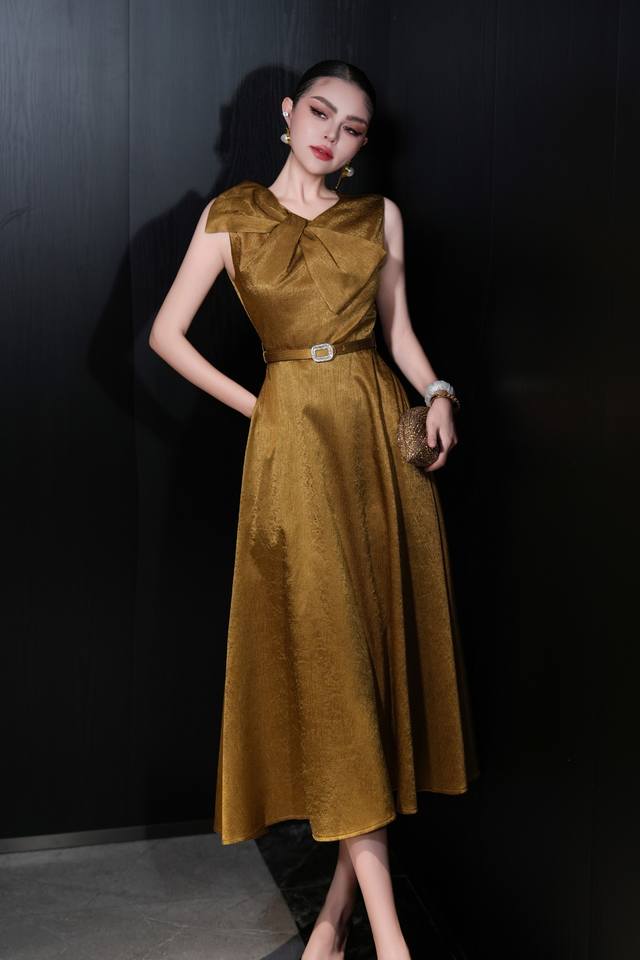 Hot New Sleeveless Bow Neckline Design Adds A Soft Temperament With A Belt To Show The Body Proportion
