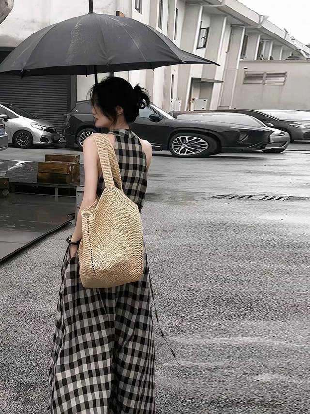 Hot Sale High-Grade Hong Kong Style Retro Plaid Halter Dress Elegant And Cool Style Fashionable And Easy To Wear High-Grade And Durable Anyone Who Wears It Will Look Good Smlxl Fabric Cotton Blend S Size Bust 88 Waist 90 Drawstring Skirt Length 118 Each Size Bust Flat Waist Difference 4 Cm Length Shoulder Width Difference 1 Cm And So On