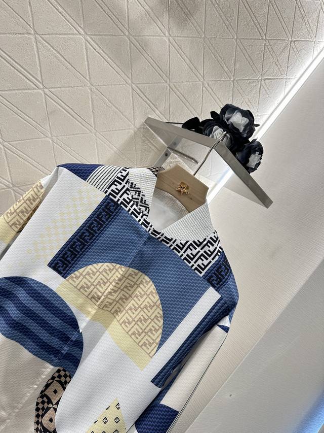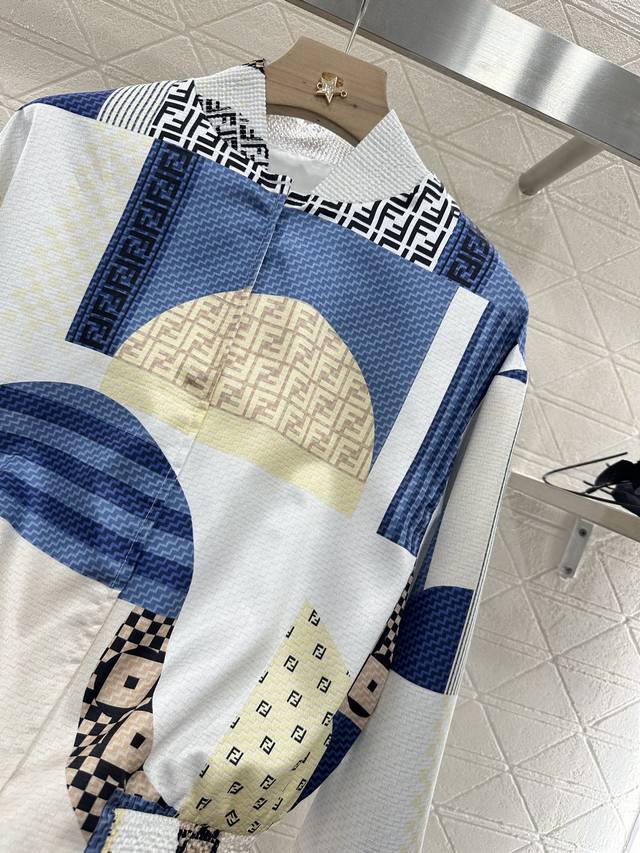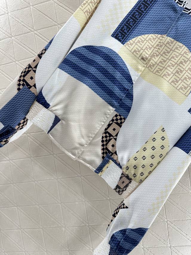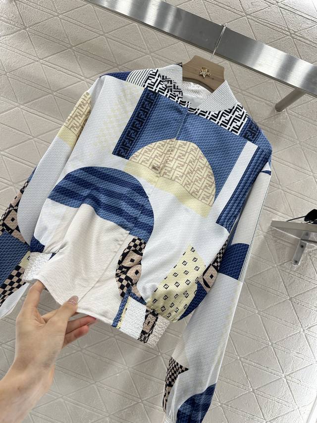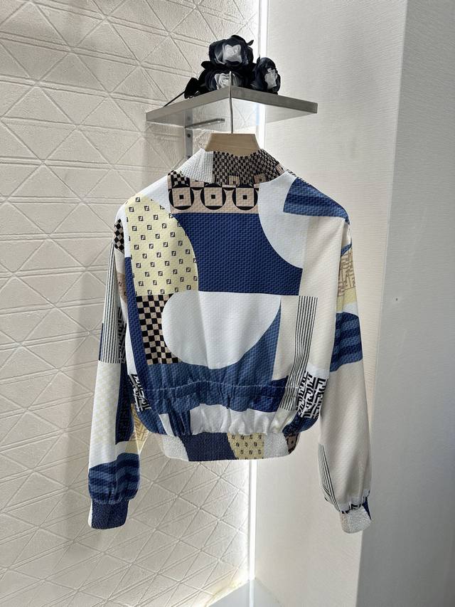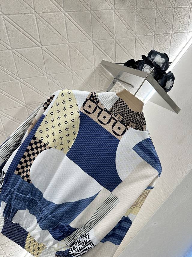 Customized Yb Imported Jacquard Twill Thick Material Texture Gloss Slightly Stiff And Stylish Lapel Zipper Flight Jacket Loose Casual Cut Embellished With Threaded Elastic Edging Webbing Outlines The Contours For A More Attractive Look The Whole Body Is Full Of Blue And White Blocks Colliding And Alternating Artistic Sense The Jacquard Is Interspersed With Double F Logos To Highlight The Style And Atmosphere, Which Is More Casual And Flexible. It Meets A Variety Of Needs And Matches With Fashionable Trends. Customized Surface And Accessories Look For The High Version