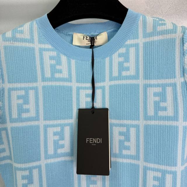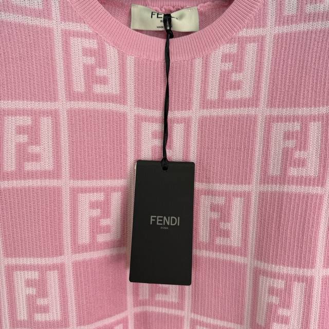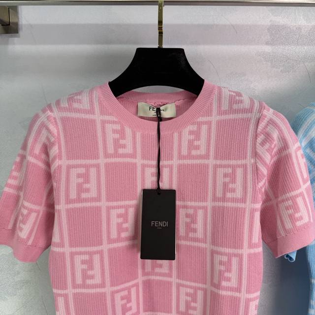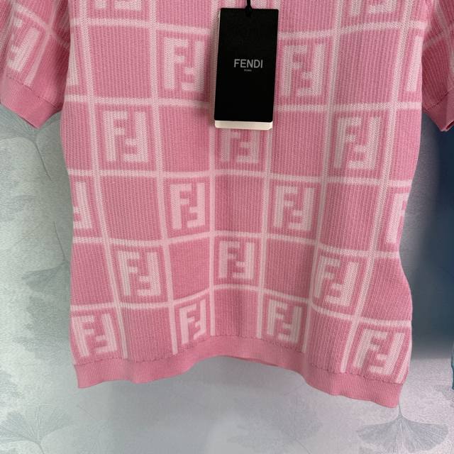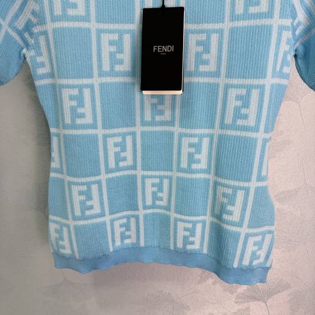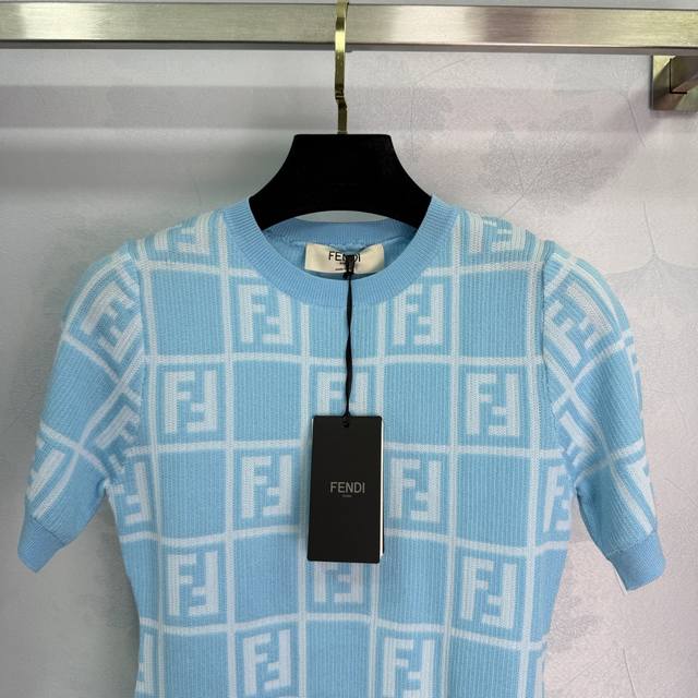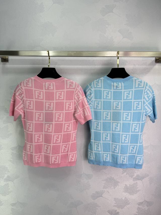 fend*25 Spring And Summer New Knitted Round Neck Short Sleeve Checkered Jacqu