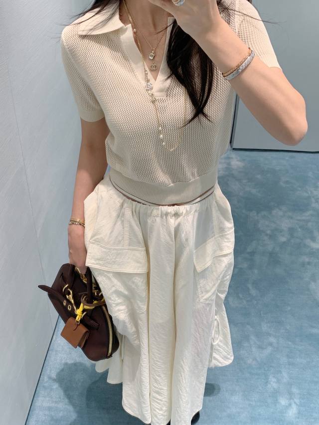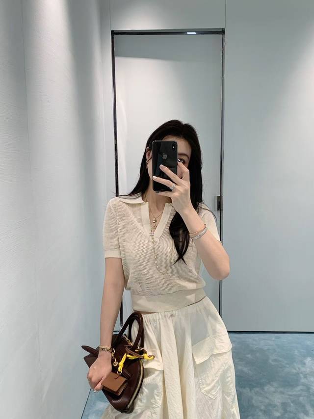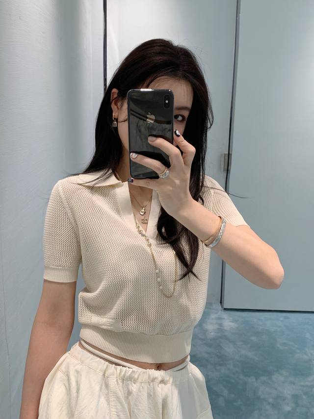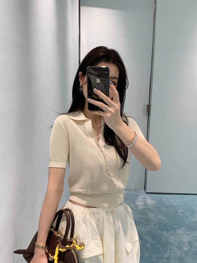 fend*25Ss New Spring And Summer Micro-Logo Hollow Knitted Short-Sleeved Top O
