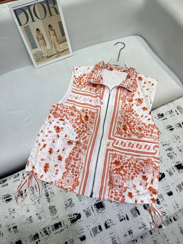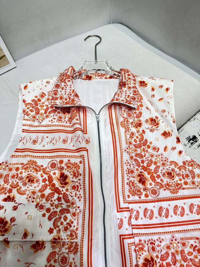 fendi*2025 New Summer Suit Sleeveless Lapel Vest Elastic Waist Shorts New Printed Fabric Hem Drawstring Design Front Middle Pocket Decorative Fabric Light And Comfortable Single Color Sml