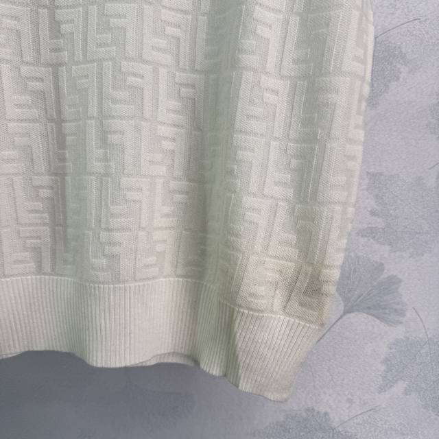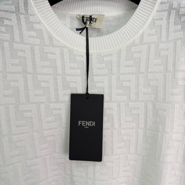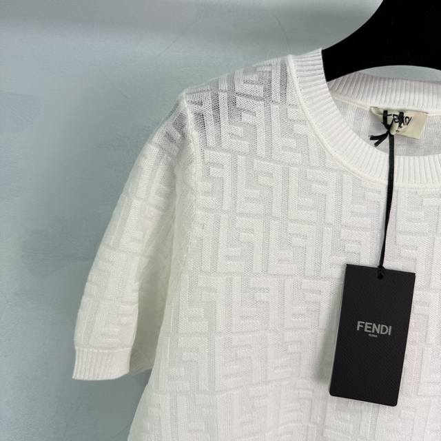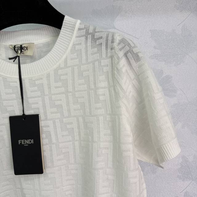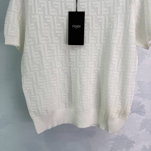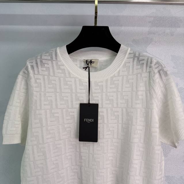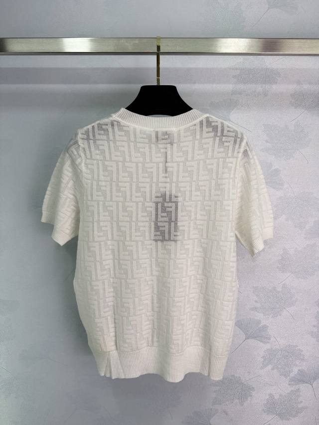 fend*White Full-Print Logo Short-Sleeved Knitted Top Classic Style Fashionabl
