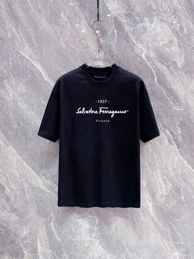 Ferragamo 2025 Latest Men's High-End Goods. The Letter Logo Print On The Chest Adds Vitality. The Most Classic And Clear Combination Of Cleanliness And Purity. Must-Buy Recommendation. Made Of 190G Double-Strand Mercerized Fabric With Clear Texture, Showing High-End Luxury Quality. Classic Round Neck Design. Simple And Generous Double-Standard High Specifications. Invincible And Versatile. Suitable For People Of All Ages. The Details Are Very Well Handled. A Short-Sleeved Shirt That You Don't Want To Take Off Once You Put It On. Made Of Double-Strand Mercerized Fabric. Color Black. White M-Xxxl
