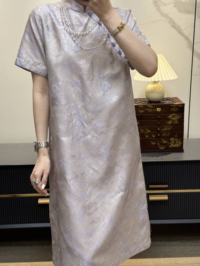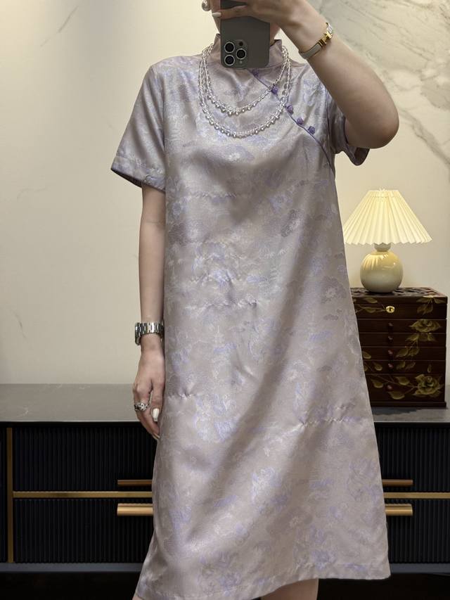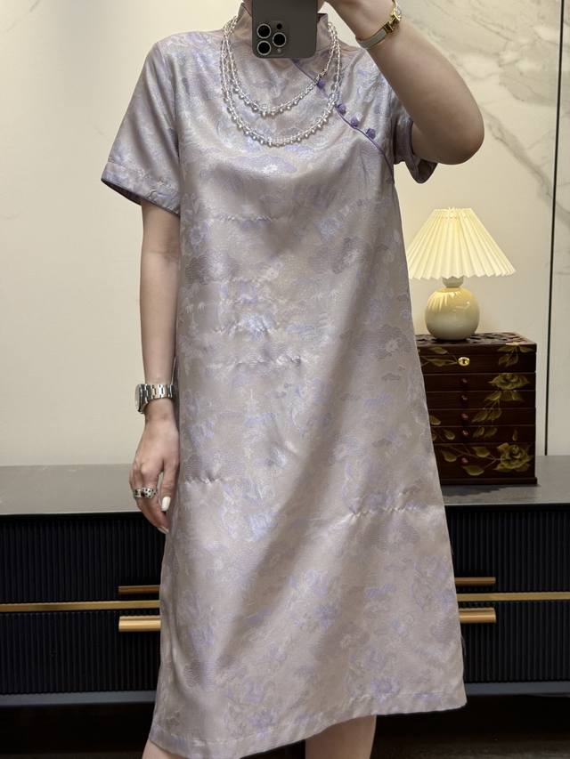 Gold-Woven Different-Color Rose Mulberry Silk Cheongsam Skirt S- Xl