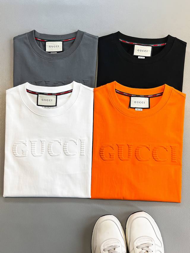 gu# 2025 Spring And Summer New Releases Newest Short-Sleeved Round Neck T-Shirt High-End Custom Design Avant-Garde Fashion Brand Logo Heavy Craftsmanship Design High-End Customization 230G Fabric. Soft To The Touch. Comfortable To Wear. Exquisite Stitching At The Counter Level. Fine Workmanship. Invincible Upper Body Effect. A Must-Have Item For Handsome Men. Colors: Black, White, Gray, Orange. Size: S-2Xl