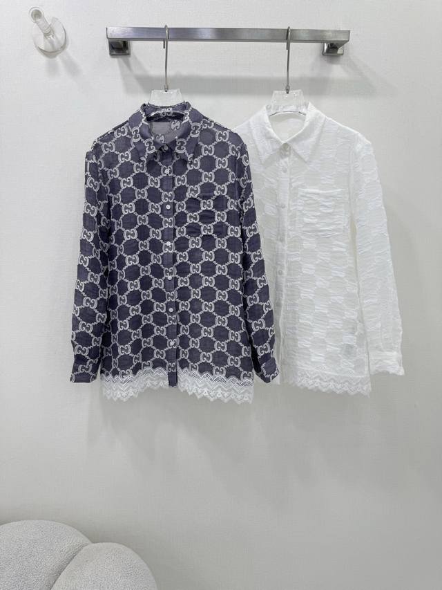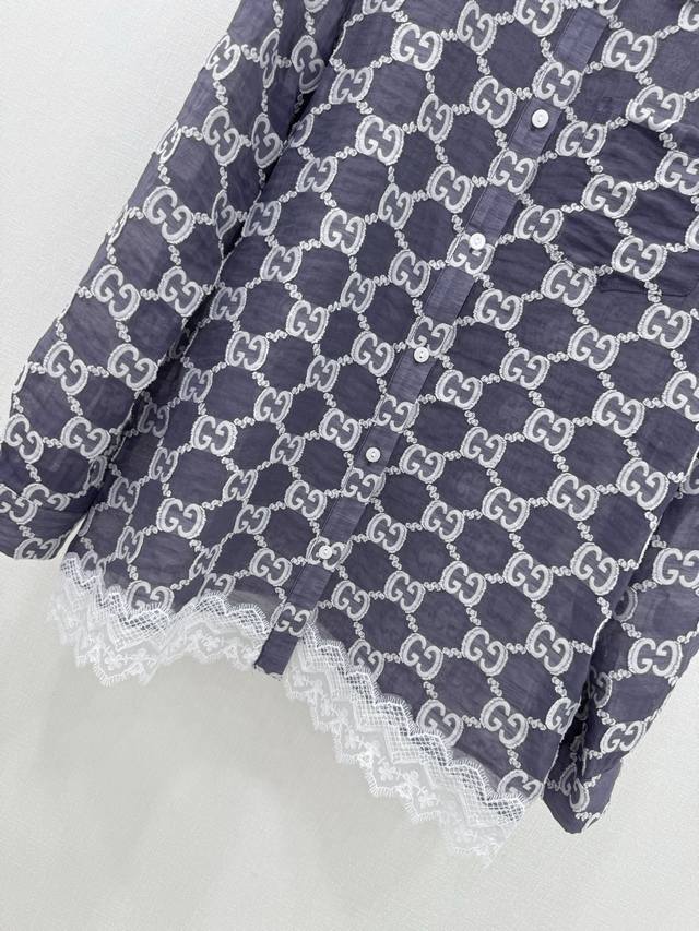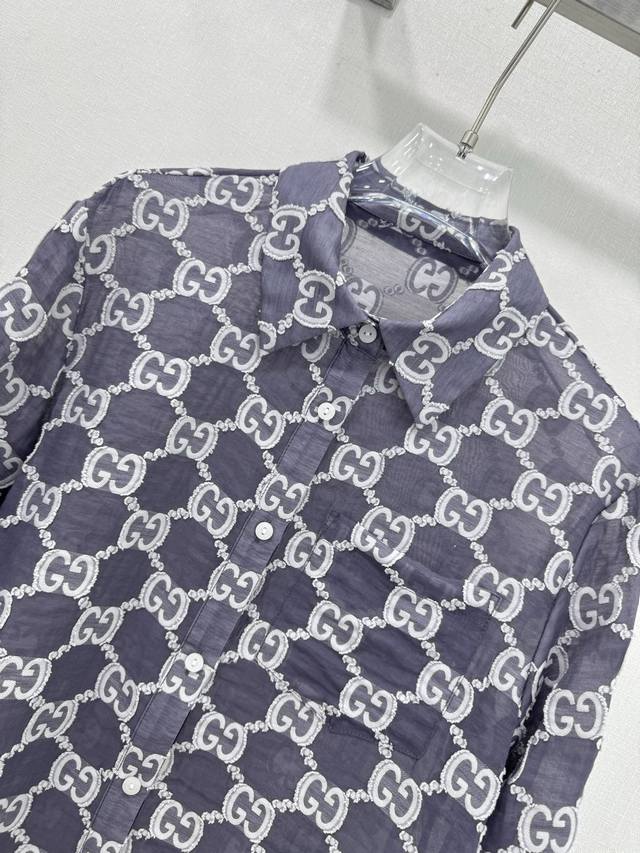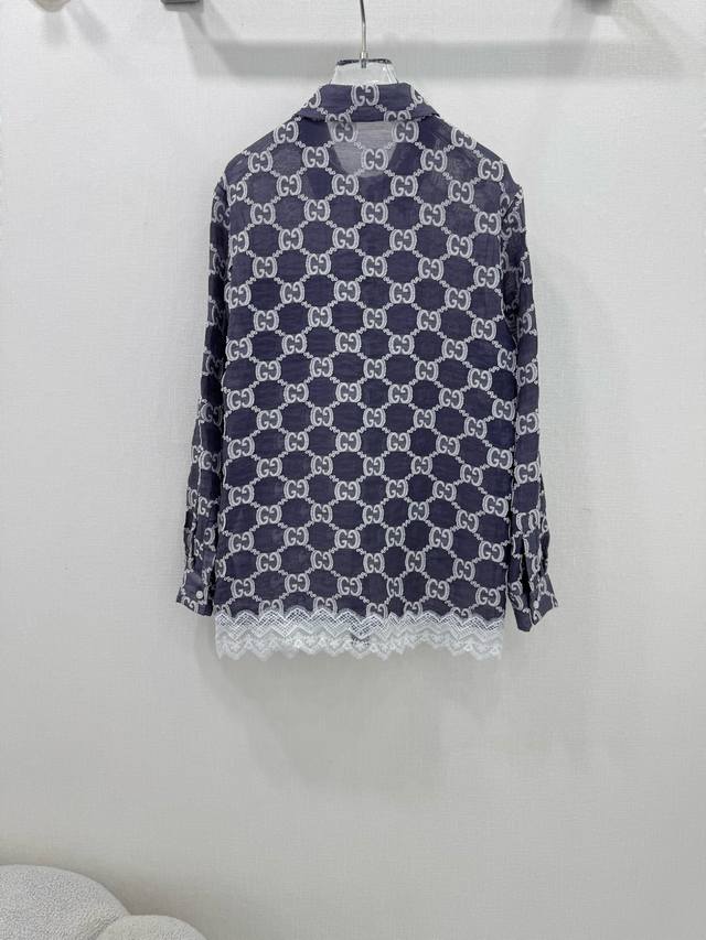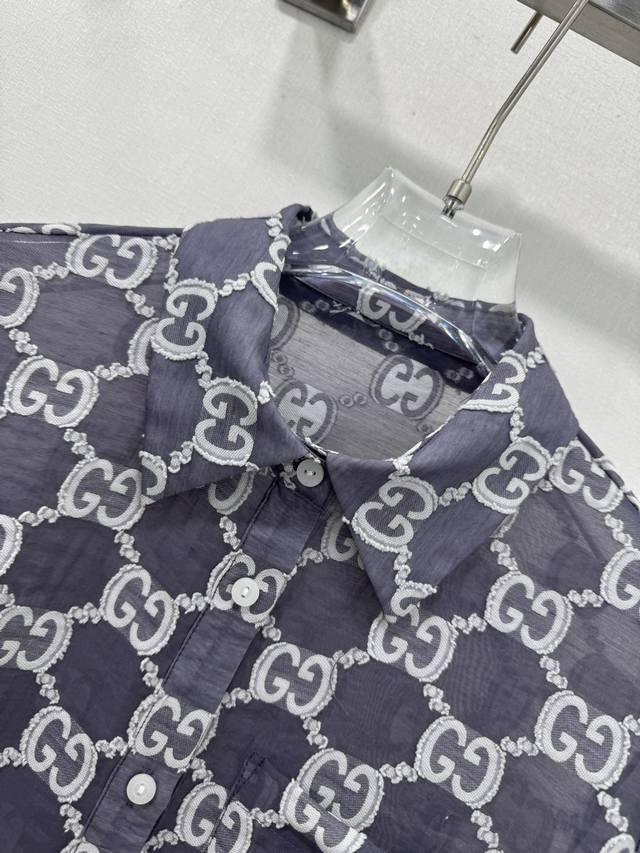 gucc*Gjia 25 New Summer Jacquard Semi-Transparent Sunscreen Shirt Hem Splicin