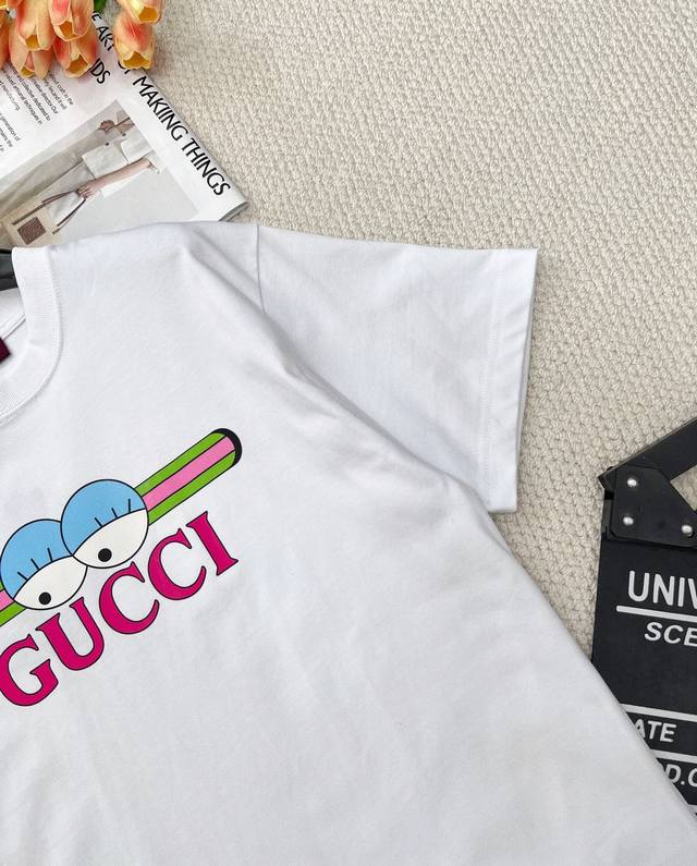 gucci Gei It Limited Capsule Series Cartoon Eyes Letter Print Short-Sleeved T-Shirt