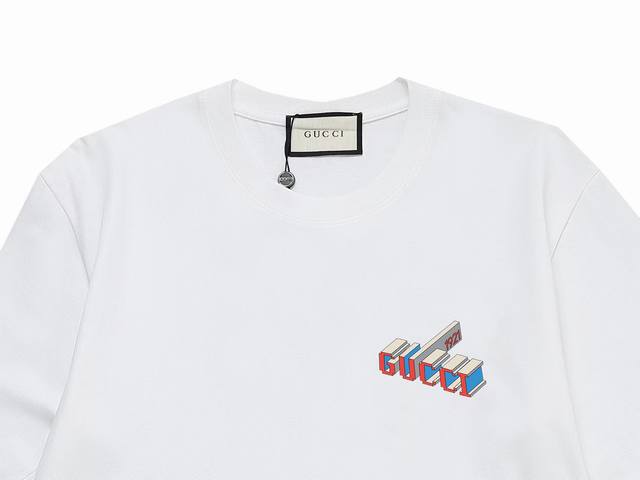 gucci New T-Shirt On Sale Gucci Logo Print Reverse Label Design On The Back 1:1 High Quality 100% Cotton Washed Fabric Combed Compact Siro Spinning No Shrinkage No Deformation More Comfortable Soft High Weight Better Feel Three Labels Available For Both Men And Women