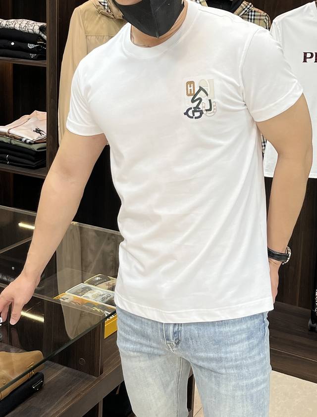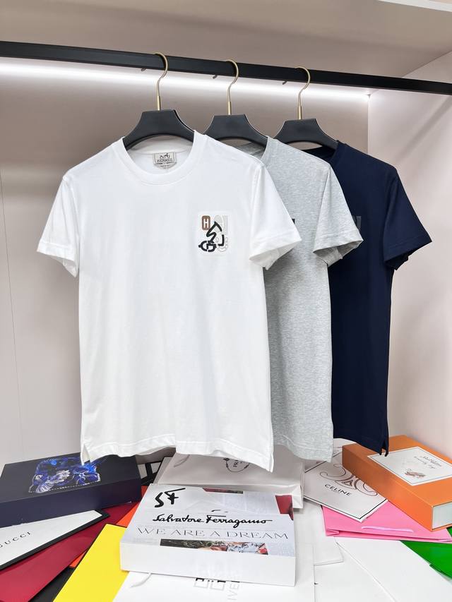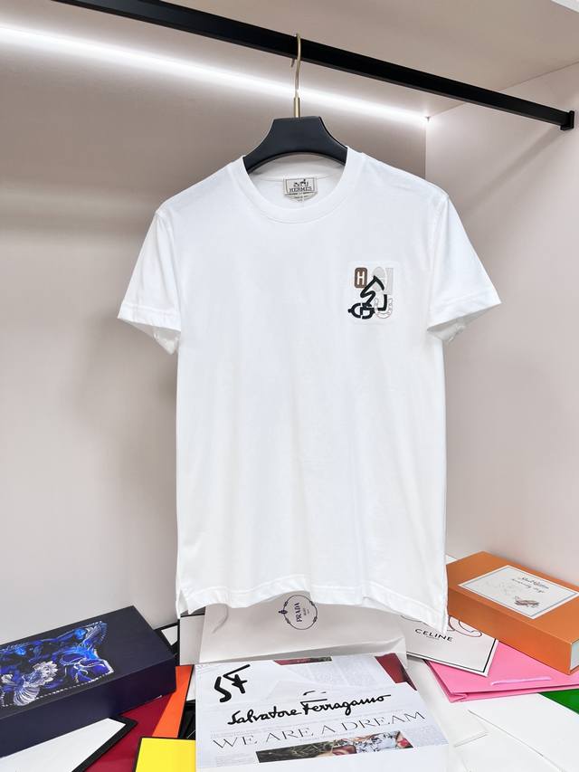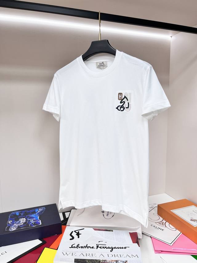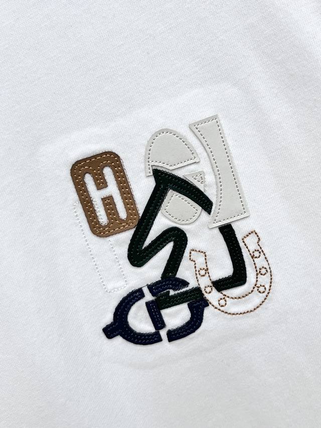 Hermes 25Ss New Leather T-Shirt Hermes This Short T Is Made Of Pure Cotton Fabric. The Front Chest Is Decorated With H Puzzle And Washable Lambskin Mini Patch. The Style Is Very Original And Unique. Highly Recommended