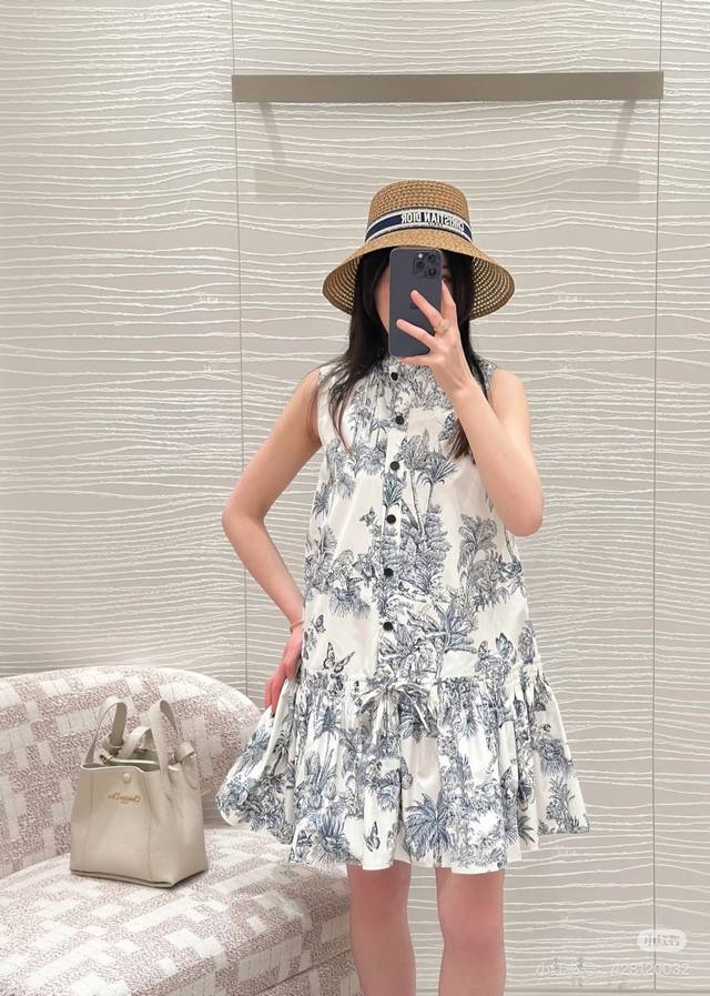 Highly Recommend Dio*2025 Spring And Summer New Printed Sleeveless Vest Dress Retro And Fashionable Low-Key Temperament And Luxury High-End Version Versatile And Not Picky Customized Technology Fabrics Workmanship Quality Look At The Details White And Rich Must Buy Highly Recommended 36 Size Bust 90 Skirt Length 90 One Color Sml Size High Quality