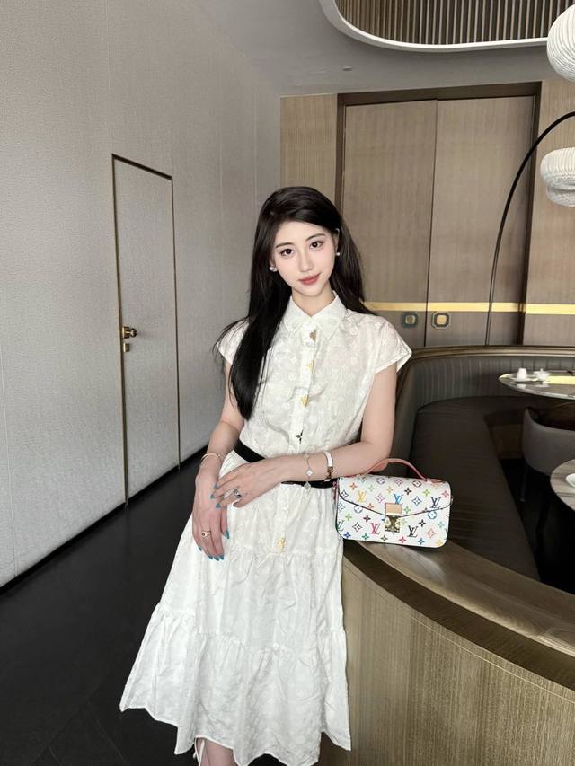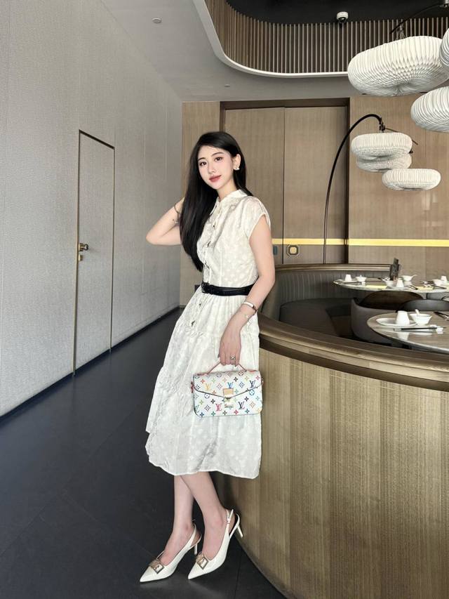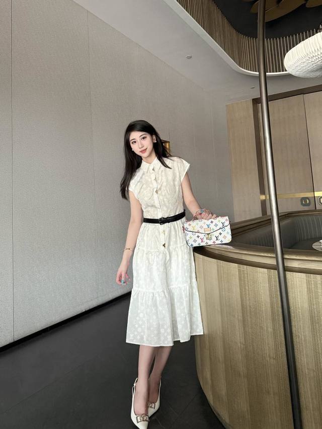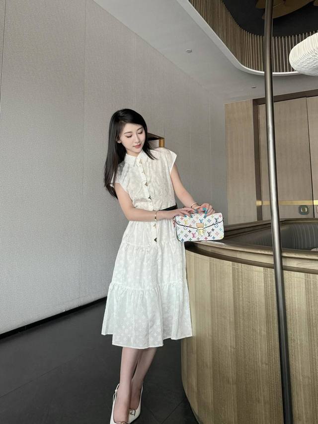 Highly Recommend Lv*2025 Spring And Summer New Jacquard Gold Coin Belt Sleeveless Dress. The Upper Body Is Full Of Fashion And High-End Feeling. It Has Its Own Aura. The Texture Of The Fabric Is Very Nice. It Is Fashionable And High-End. The Color Is Super Right. It Makes You Look White And Thin. It Has A Cool And Handsome Classic Series. You Can Walk With The Wind. The Upper Body Aura Is Fully Open. The Length Is Just Right. It Is Easy To Control Two Colors. Sml Code High Quality