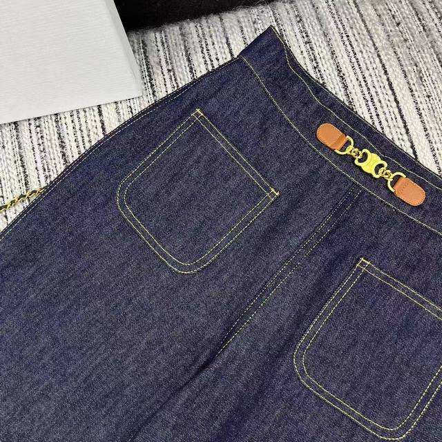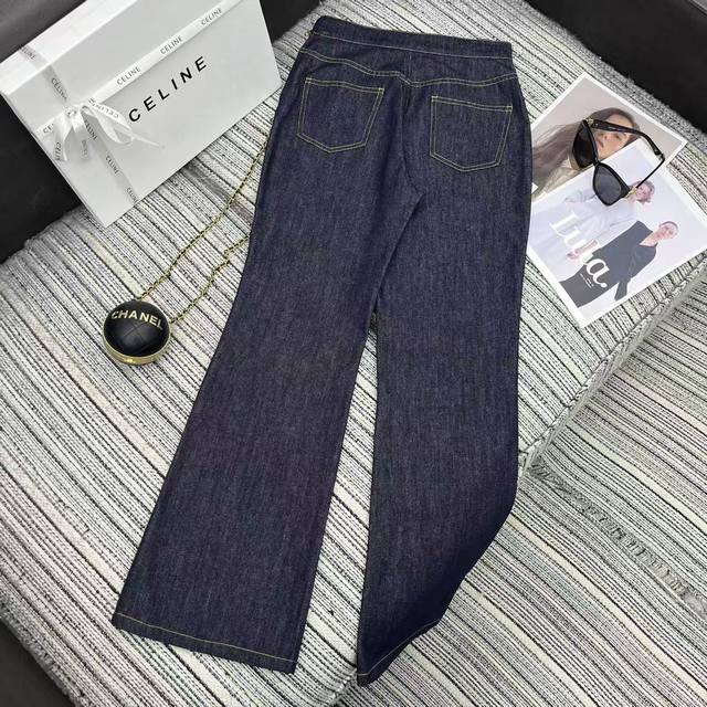 Highly Recommend The 25Th Year Early Spring And Summer Series Cel* New Flared Denim Trousers With Arc De Triomphe Metal Embellishment On The Waist. The Washed Color Is Beautiful And The Style Is Great. Sml