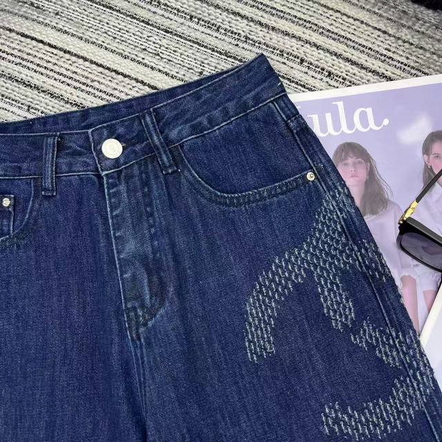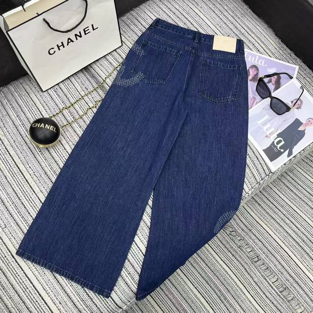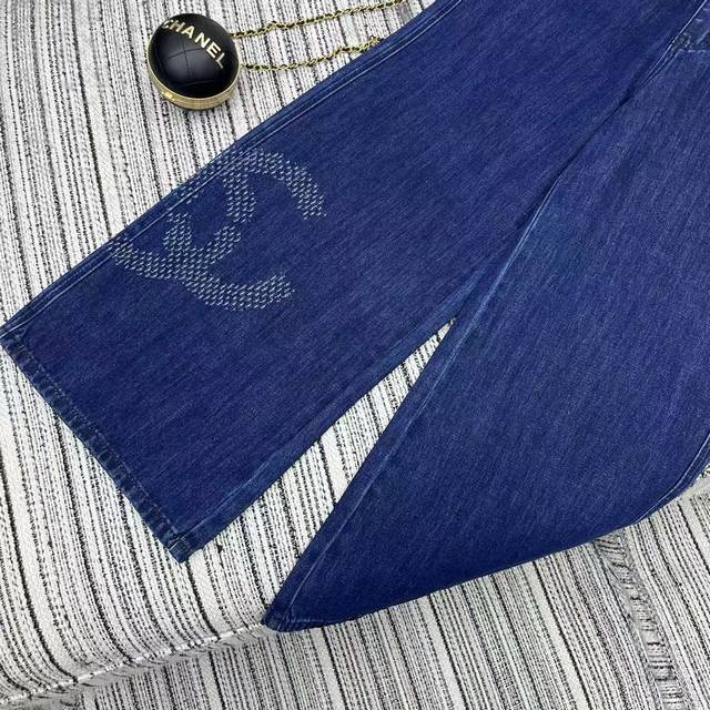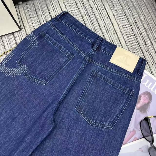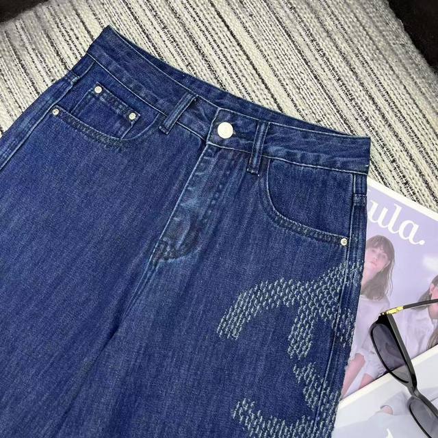 Highly Recommend The 25Th Year Early Spring And Summer Series Cha* New Double C Logo Jacquard Denim Wide-Leg Pants Washed Water Color Beautiful Sml