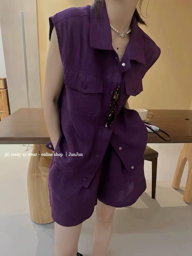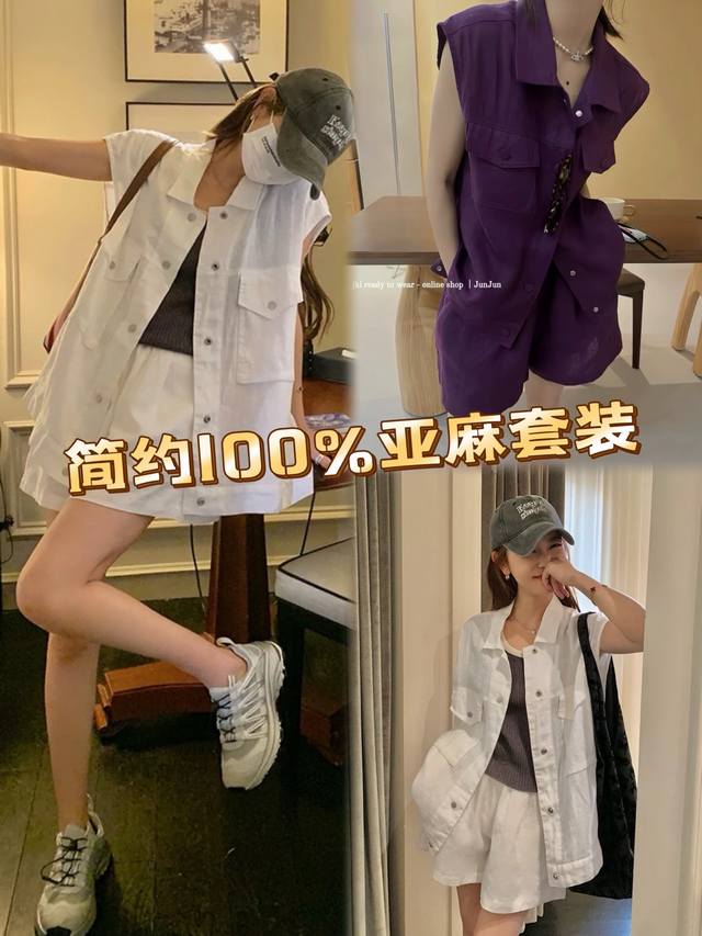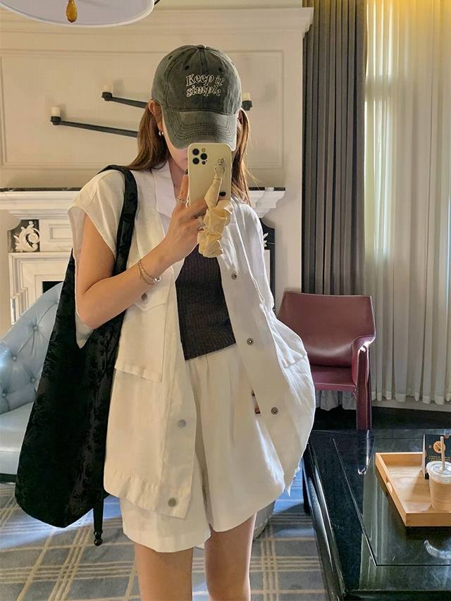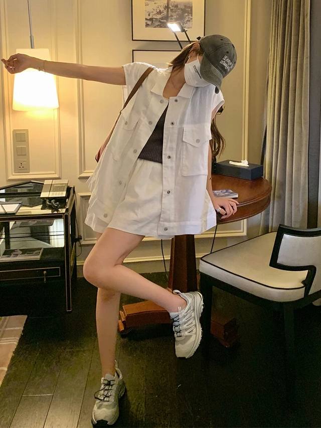 High-Quality Suit Sleeveless Loose Top + Elastic Waist Loose Shorts Two-Piece Suit With Age-Reducing Workwear Vest + Wide-Leg Shorts Two-Piece Suit Can Accommodate All Kinds Of Body Shapes, Whether It Is Thick Legs Or Wide Hips, Comfortable To Wear Without Showing Cross-Section Smlxl