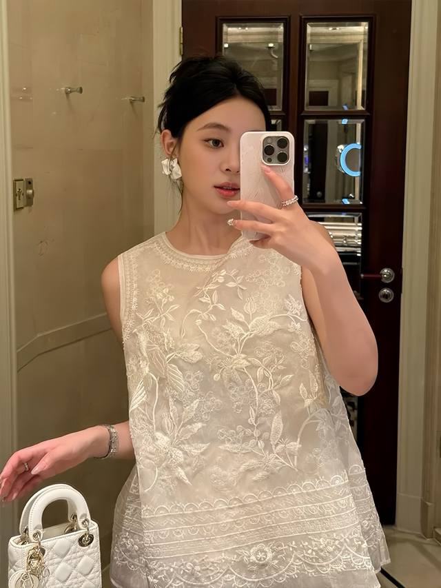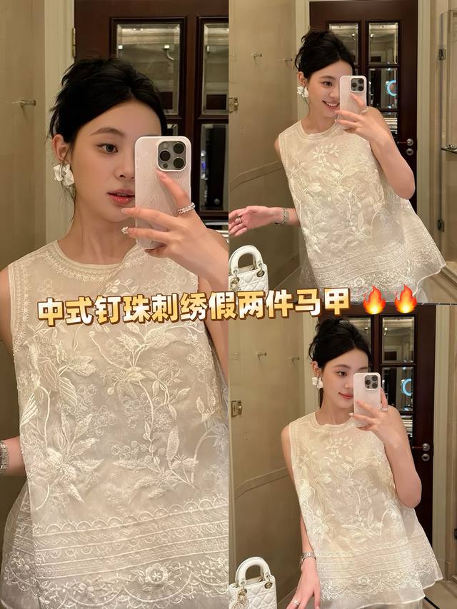 Invincible Hit, Unique And High-End Chinese Style Beaded Embroidery Fake Two-Piece Vest, Exquisite Pattern Decoration With Black And White Stripes, The Overall Style Is Retro And Elegant Without Losing The Sense Of High-End, Showing The Temperament Of A Lady Smlxl