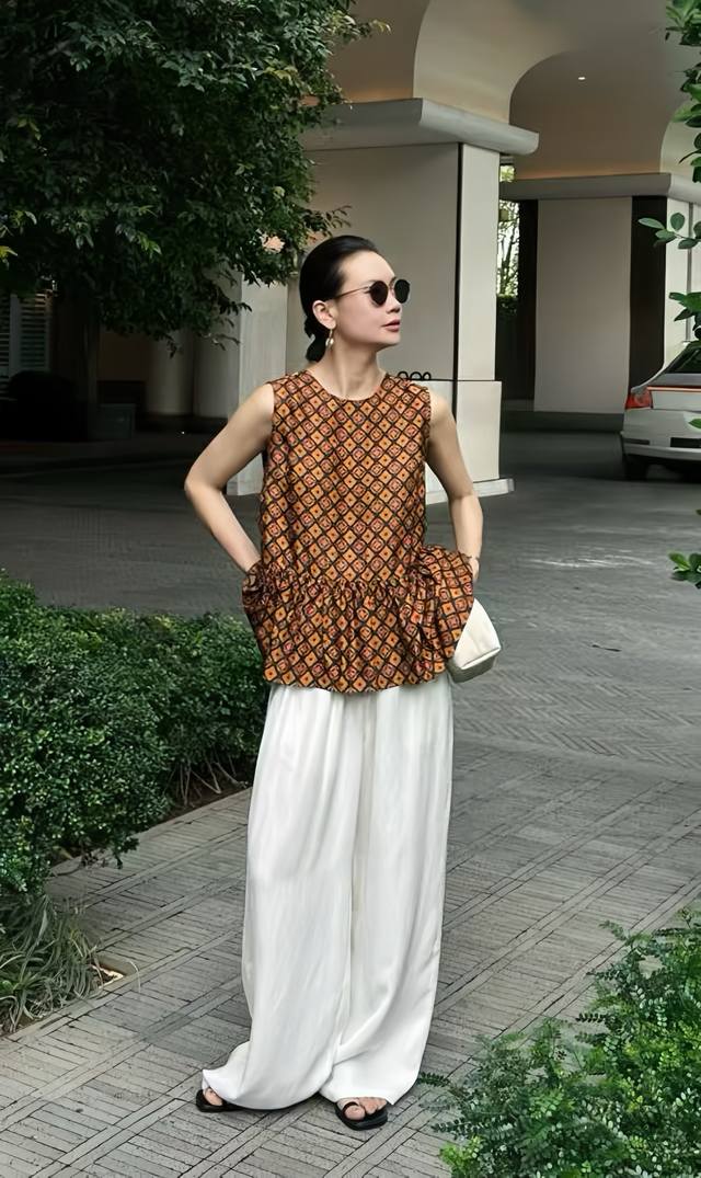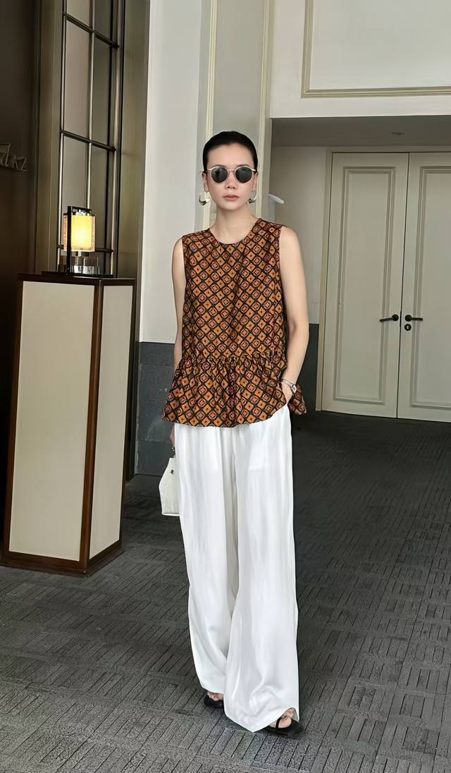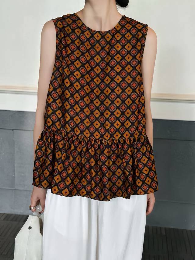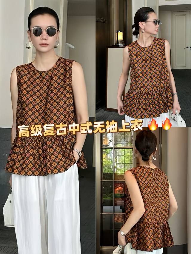 Invincible Hot-Selling High-End Retro Round Neck With Lotus Leaf Hem Chinese Sleeveless Top The Overall Style Is Simple And Generous Without Losing The Retro Charm, Showing A Unique Fashion Taste Smlxl