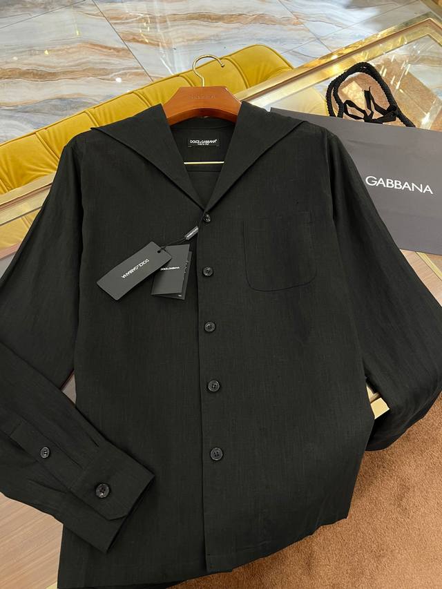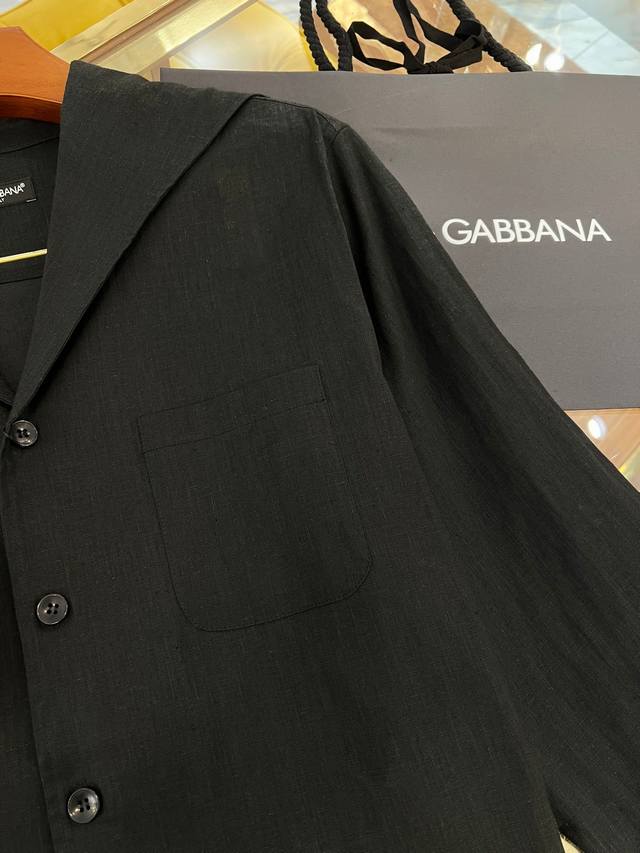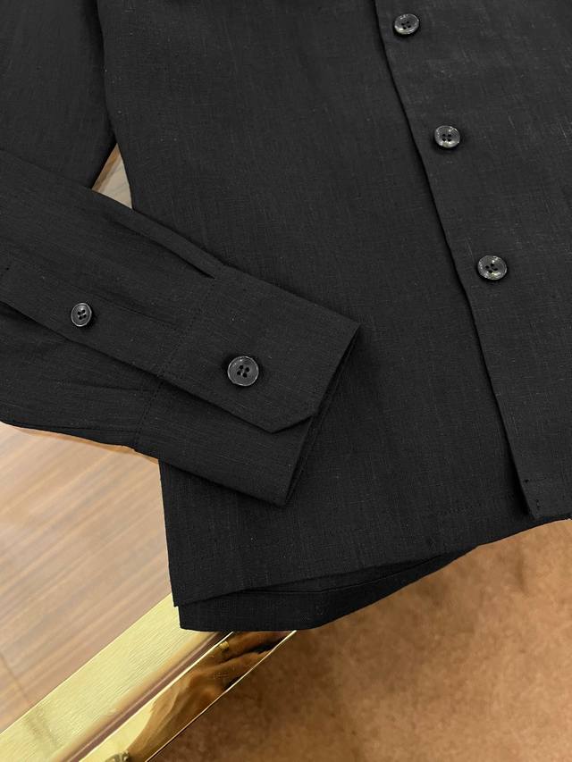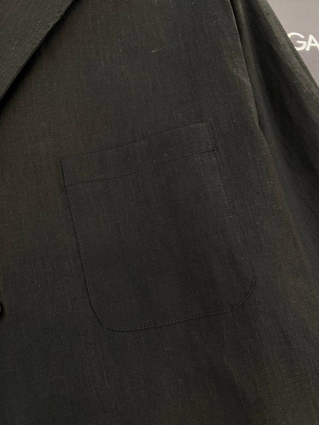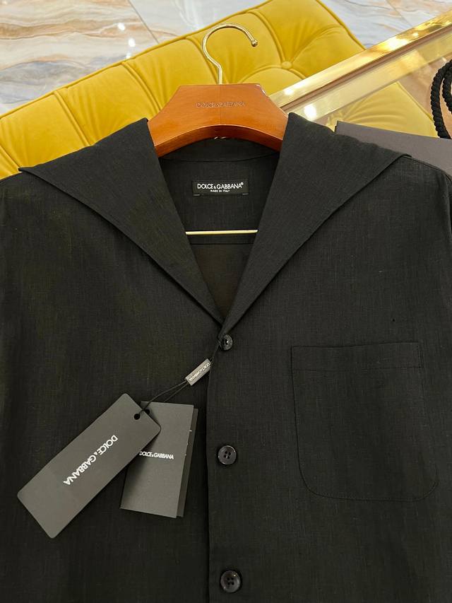 Jacket And Pants 2025Ssdg The Latest Catwalk Style New Noble Style 100% Linen Shirt Unique Navy Collar Design Fashionable People Must-Have Upper Body Really Handsome Black Size: 44-52