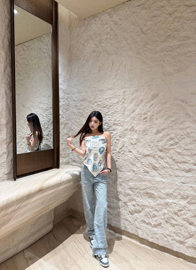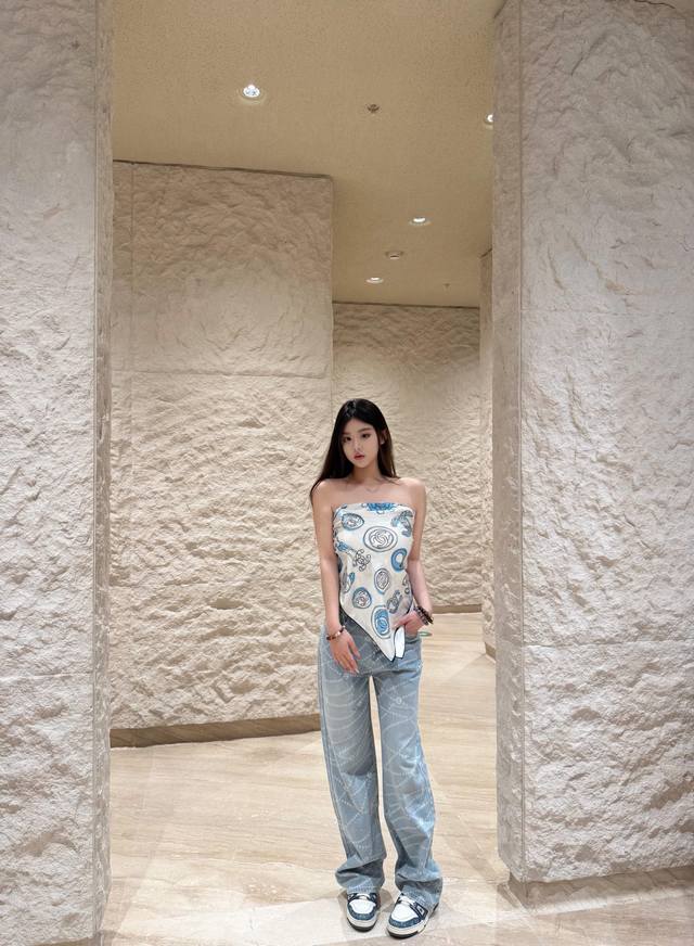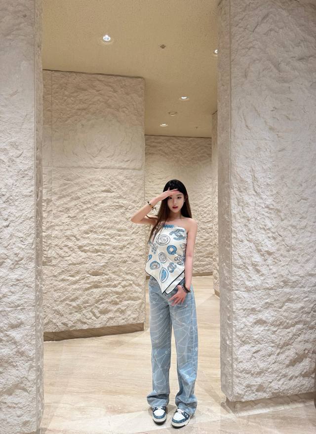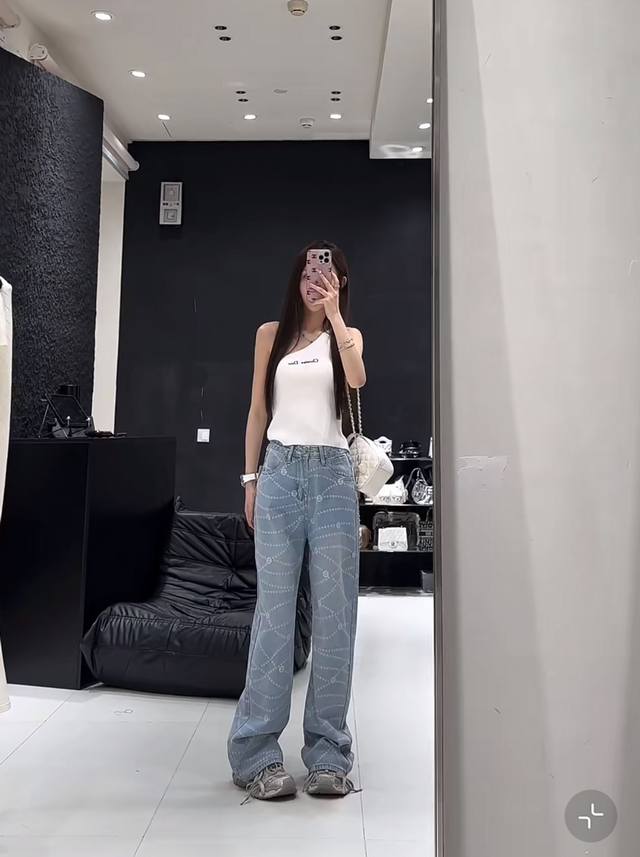 Jeans Chanel Spring And Summer New Laser Pearl Chain Straight Jeans Color: 2 Col
