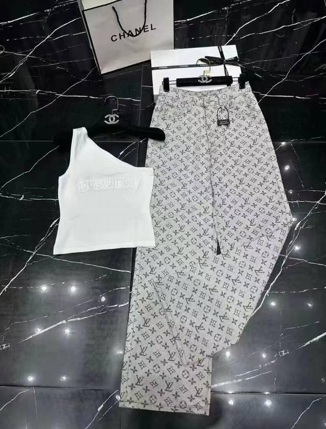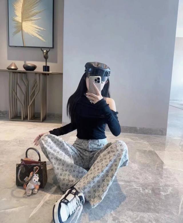 Lvjia 24 Early Autumn New Full Print Old Flower Logo Straight Jeans