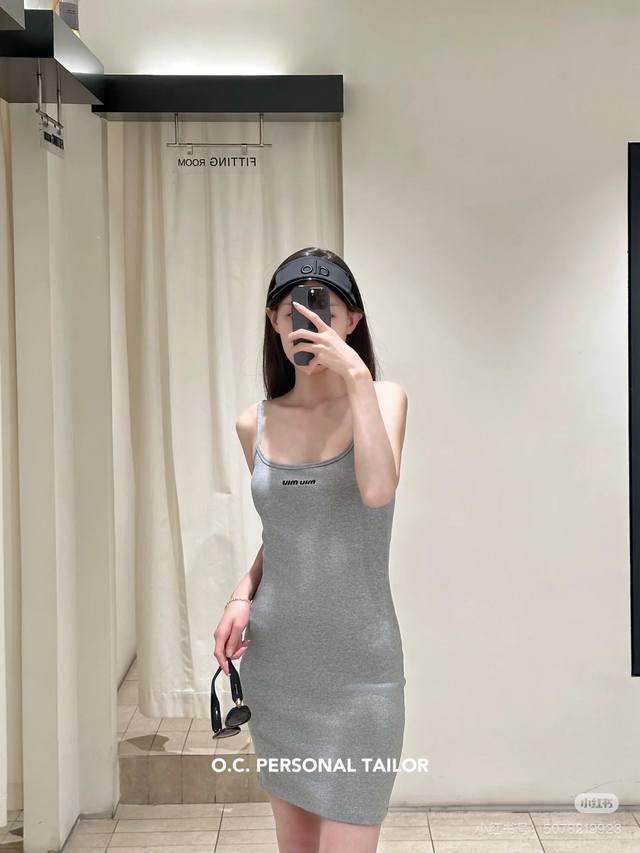 Knitted Style Miumi* 25Ss Spring And Summer New Style Gray Chest Letter Embroidery Small Suspender Skirt Original Development High Version Imported High Count Knitted Cotton Fabric Texture Invincible Age-Reducing Girl Temperament Versatile Classic Slim H Version Huge Weight Loss Fashionable Must-Have Single Item Workmanship Quality See Details Spot Sml