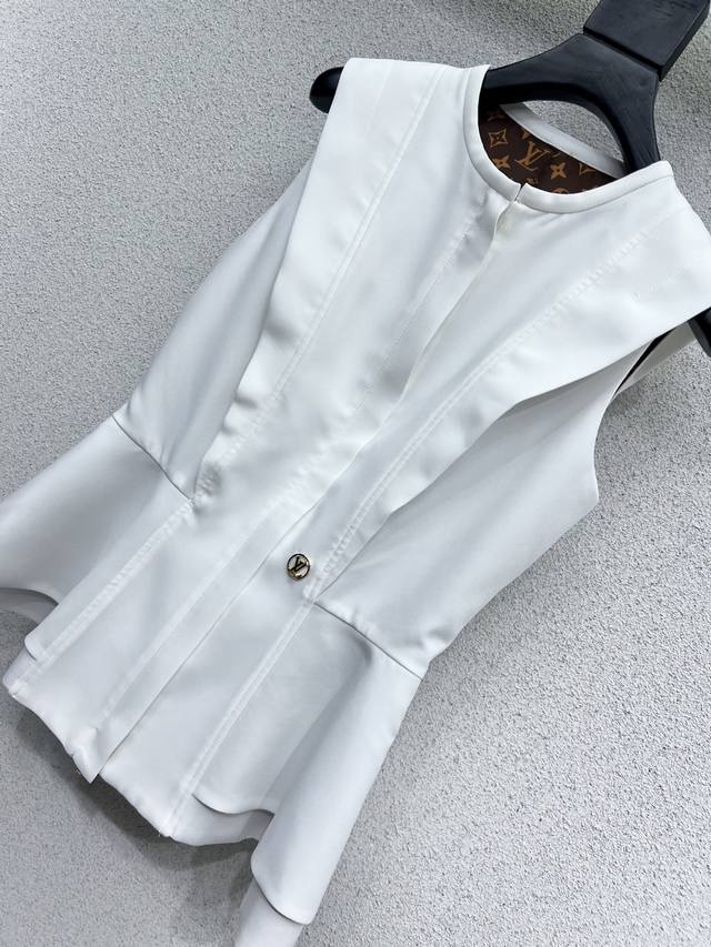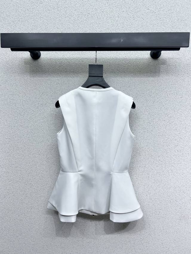 l Suit Ruffle Vest Top Custom Made In White Suit Fabric With Old Flower Lining, Low-Key, Luxurious And Advanced, Layered Ruffle Zipper Decoration, Versatile And Suitable For Everyone, Round Neck Vest With Ruffle Design On The Hem, Very Slim, Sweet And Salty Casual Style, Original Custom Hardware Accessories, High Quality Size Sml
