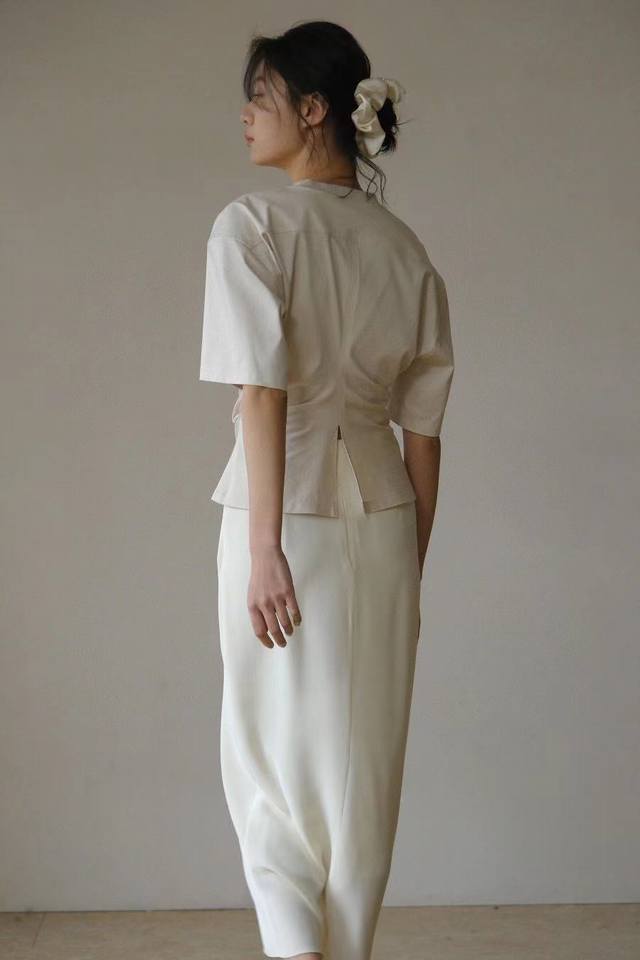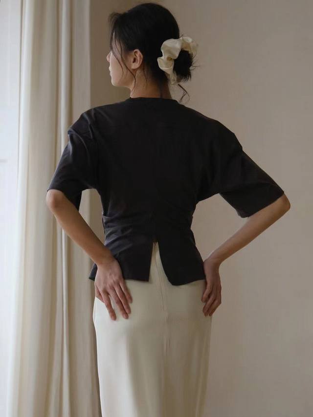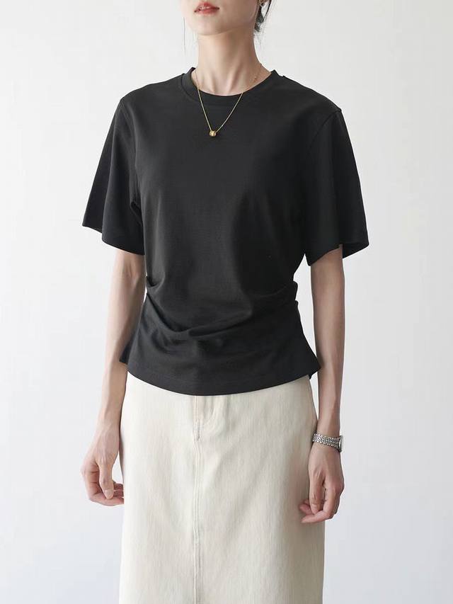 lemaire 2025 Spring And Summer New Waist T-Shirt With Wrinkles To Cover The Flesh And Make You Look Thin. Back Split In Three Colors And Three Sizes. Sml