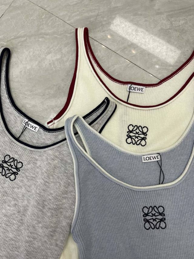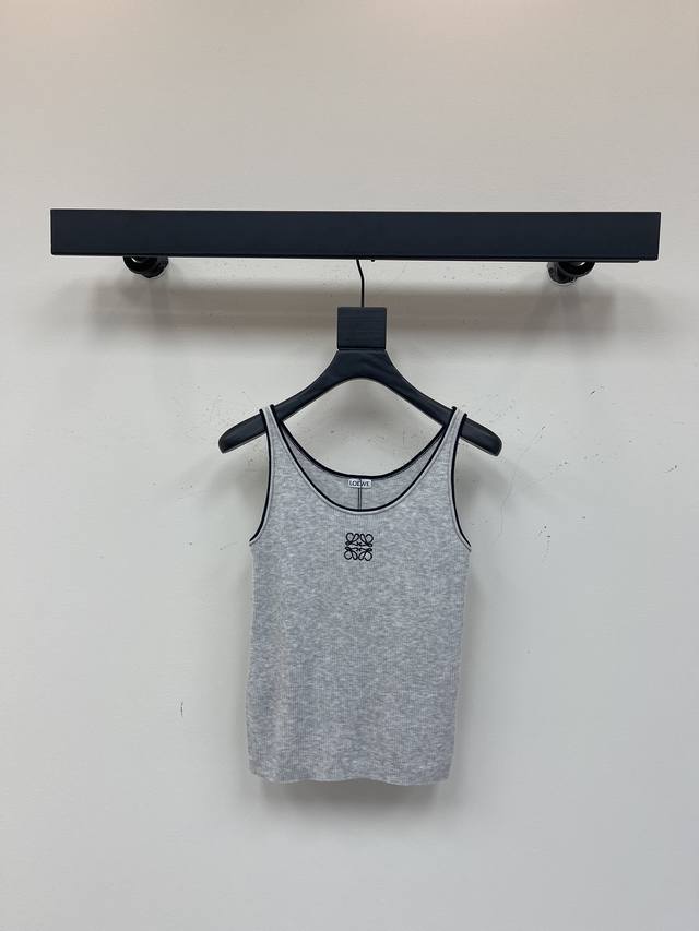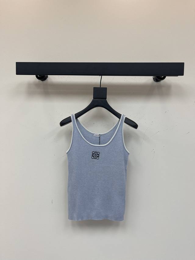 loew*25 New Spring And Summer Embroidered Logo Knitted Vest With Contrasting Color Collar And Curled Edge Design. Embroidered Logo On The Chest. Low-Key Luxury Vertical Stripes. Slim Fit. Looks Slim When Worn Alone Or In Layers. An Indispensable Item For Fashion Experts. Sml Aa