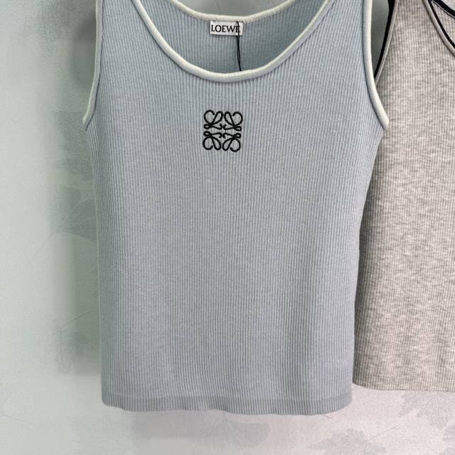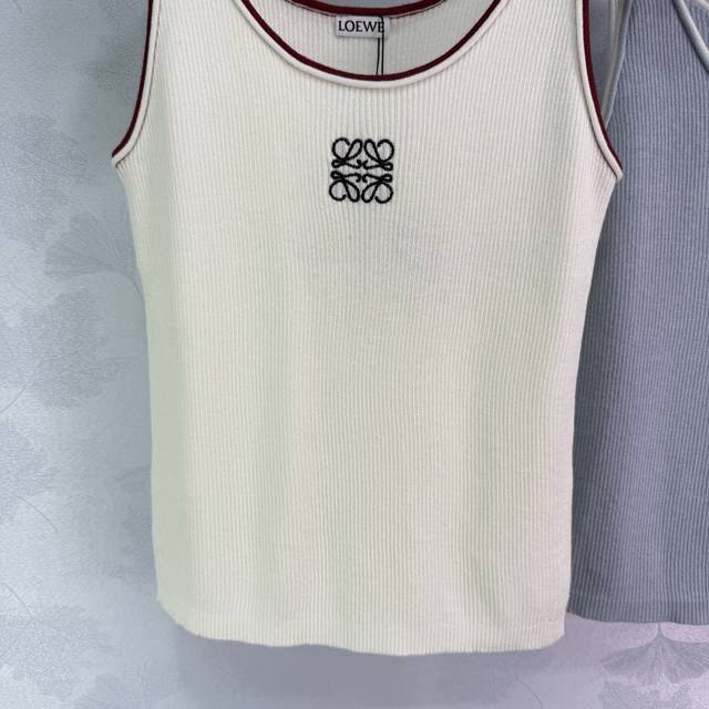 loew*Spring And Summer Knitted Vest. Classic Logo Embroidery Design. Simple And Fashionable. Available In Three Colors: White, Gray And Blue. Comfortable Fabric. Suitable For Summer Wear. Easy To Wear In All Occasions. Shows Elegant Temperament.