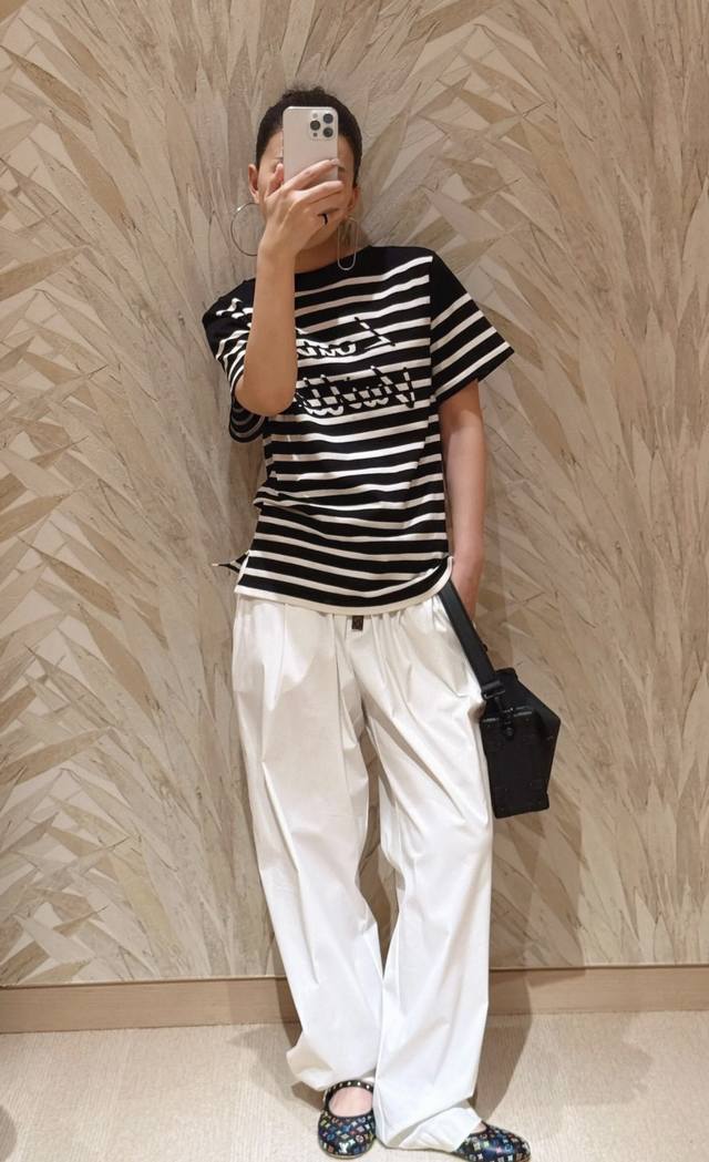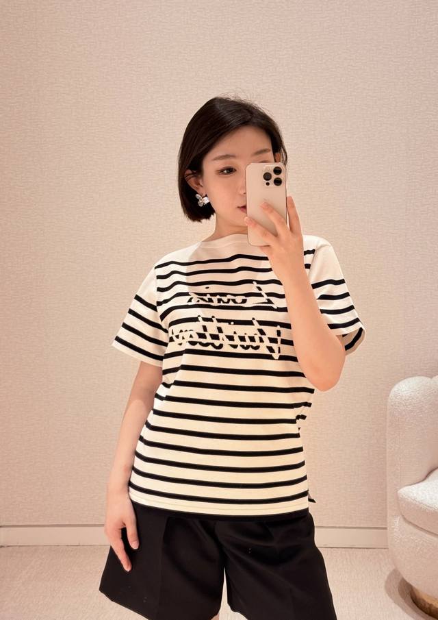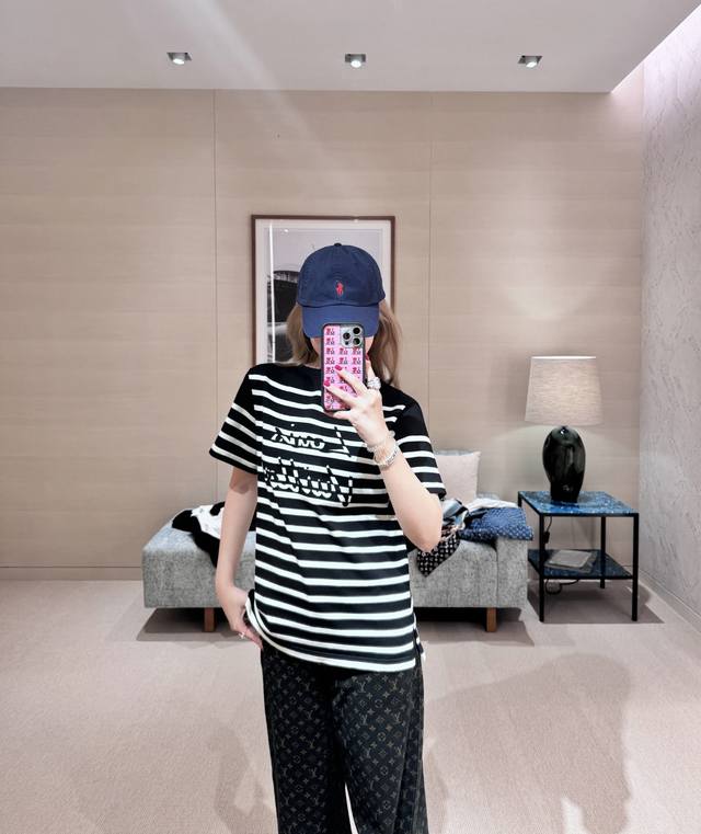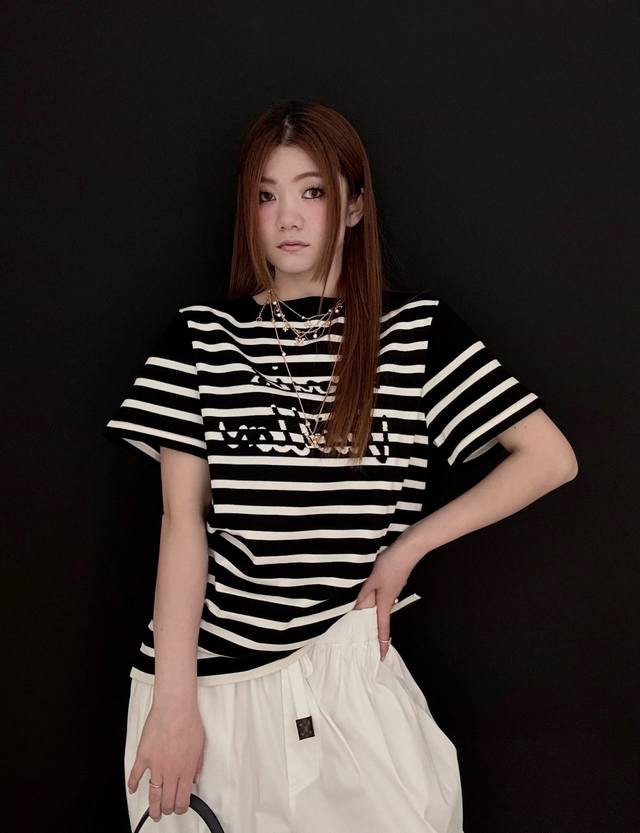 Louis 25 New Summer Striped Knitted Top With Black And White Contrast Stripes Throughout The Body, Interspersed With Letter Logos To Create An Artistic Effect, Highlighting The High-End Style, Both Single-Wear And Inner Wear Are Colorful And Fashionable, Two Colors Sml