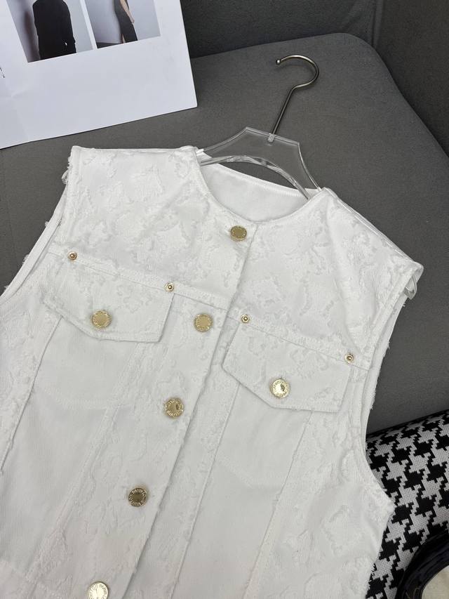 louis Vuitto* 25Ss New Denim Sleeveless Top With Old Flower Jacquard Fabric,