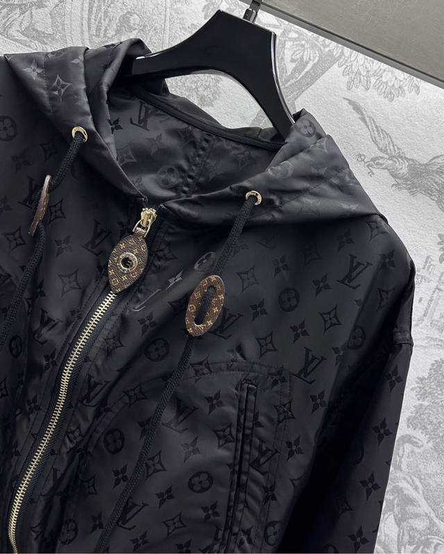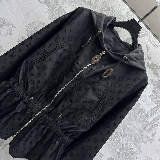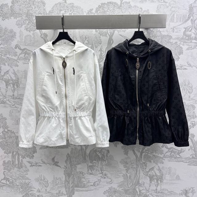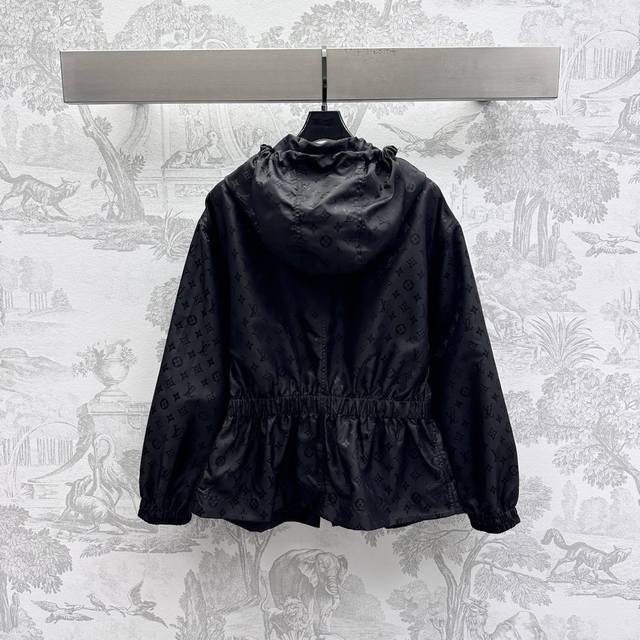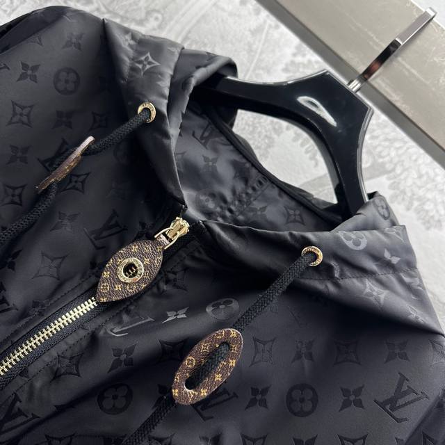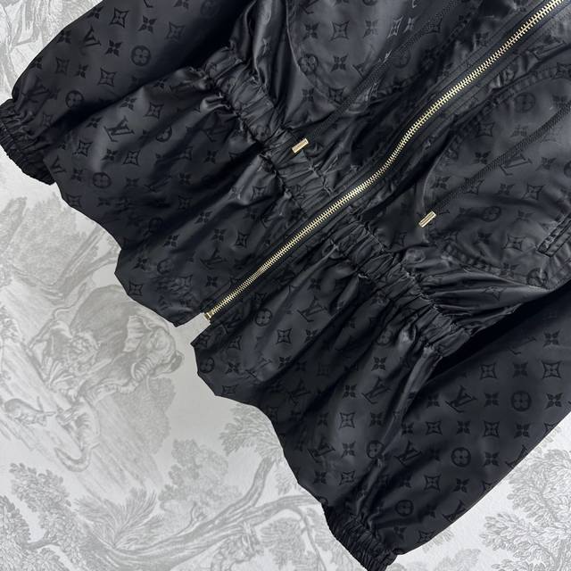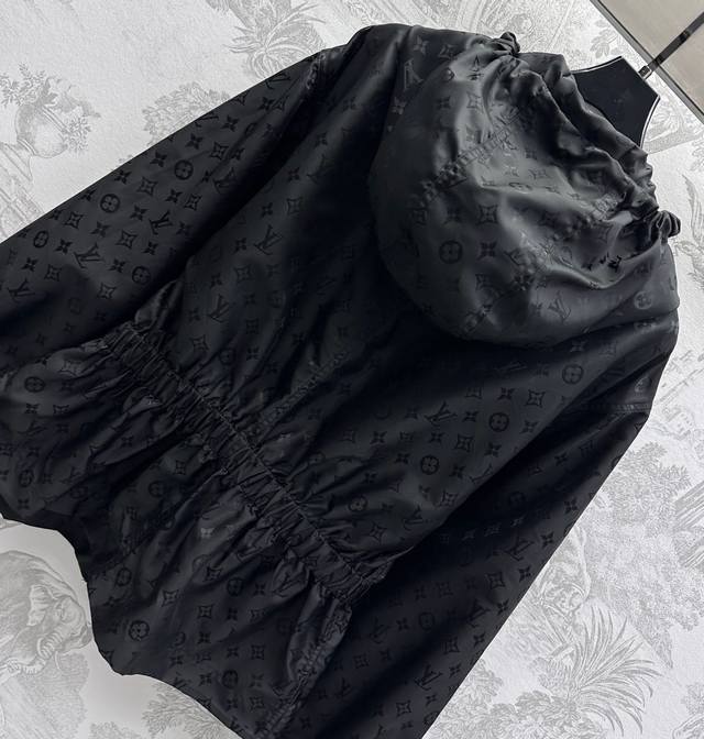 louis Vuitto*2025 New Arrivals Hooded Waisted Jacket Customized Yb Imported Jacquard Nylon Material Crisp And Stylish Signature Logo Leather Buckle Drawstring Adjustment Matching Waist Elastic Waist Design Adds Layered Shape All-Over Letter Jacquard Dark Pattern Texture Highlights Brand Tone Surface And Auxiliary Material Development Hooded Drawstring Zipper Jacket Tailoring Casual Wear Colorful And Fashionable