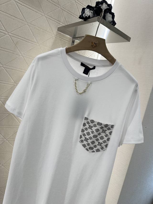 Customized Yb Mercerized Cotton Material, Glossy, Breathable And Comfortable, Loose Oversized T-Shirt Cut To Highlight The Brand Style, Made Of Heavy Cotton, Slightly Elastic, Showing A Slimming Visual Effect, Solid Color Top, Decorated With Four-Leaf Clover Iconic Letter Elements On The Pockets, Collar Hemming, Chain Details To Make The Simple Style More Layered, Wear A Casual And Lazy Style, Customized Surface And Accessories, Look For The High Version