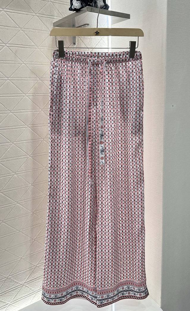 Custom Yb Imported Twill Material Comfortable And Delicate Texture Long-Sleeved Printed Shirt And Trousers Set Neatly Cut And Slim Fit All Over Red And White Tone Stripes Staggered With Four-Leaf Clover Elements Letter Decoration Cuffs And Front Placket Echo The Trouser Leg Hem To Show High-End Style With The Same Series Of Straight Wide-Leg Trousers To Complete The Set, Easy To Wear And Stylish, High-End Feeling For Home And Outdoor Wear, Customized Surface And Accessories, Identify The Version Of High-End Shirt And Trousers
