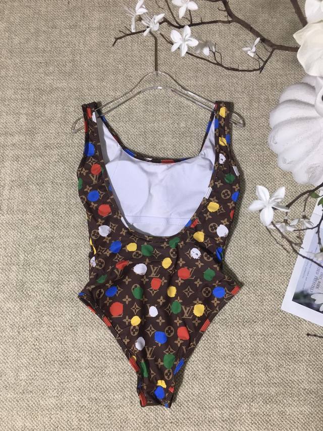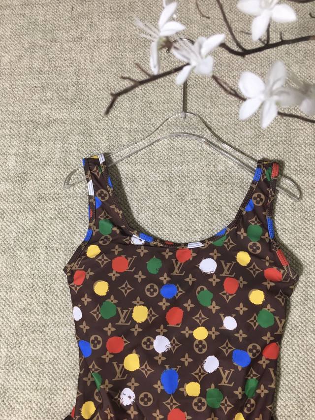 lv Colorful Polka Dot Old Flower Print Sleeveless Elastic Bodysuit Bodysuit S