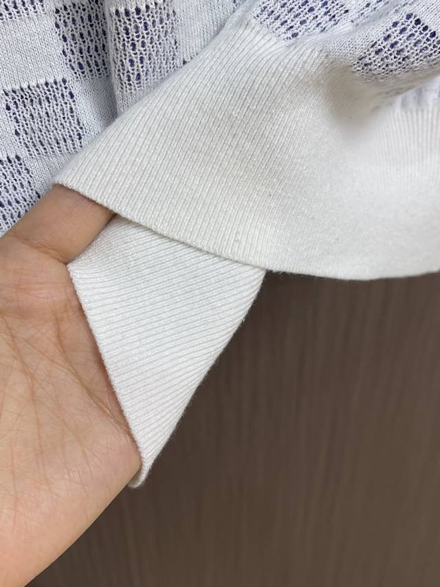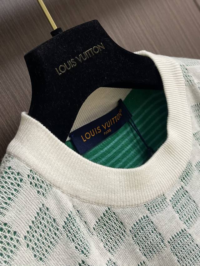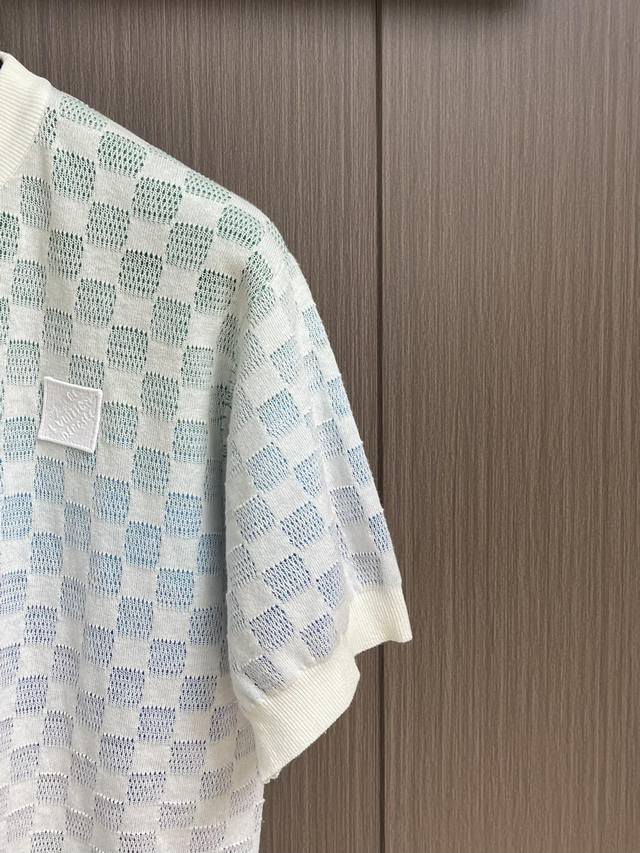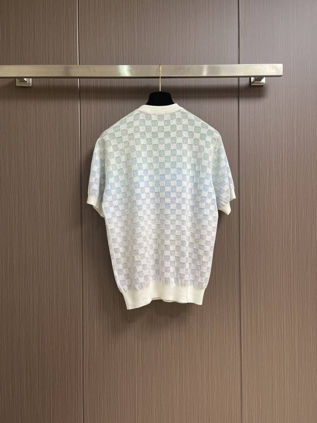 lv Gradient Checkerboard Knitted Round Neck Short-Sleeved T-Shirt Made Of Custom Cotton Yarn Yarn Woven And Dyed High-Quality, Comfortable And Soft Skin-Friendly Collar Plain Hemming Highlights Details Gradient Checkerboard Hook Flowers Are Laid Out Throughout The Chest Is Decorated With Embroidered Letter Logo Patterns To Highlight The High-End Positioning And Fashion Tone Performance And Multi-Type Clothing Match To Create A Fashionable Look Custom Accessories Complete Three-Standard Men's And Women's Sizes S-Xl