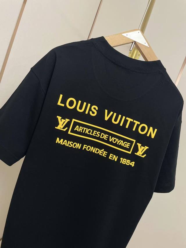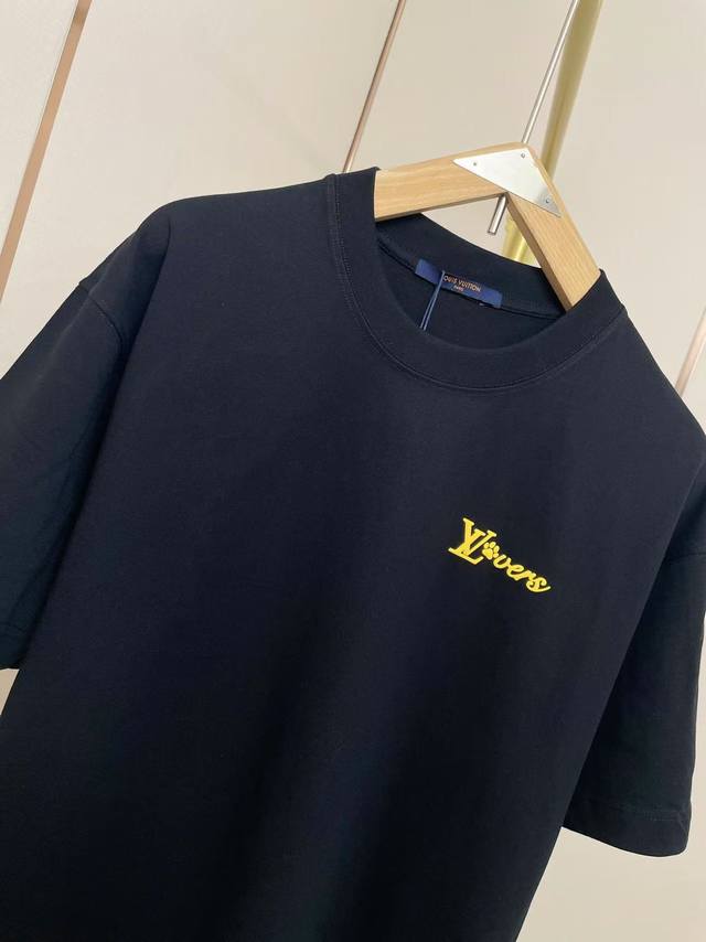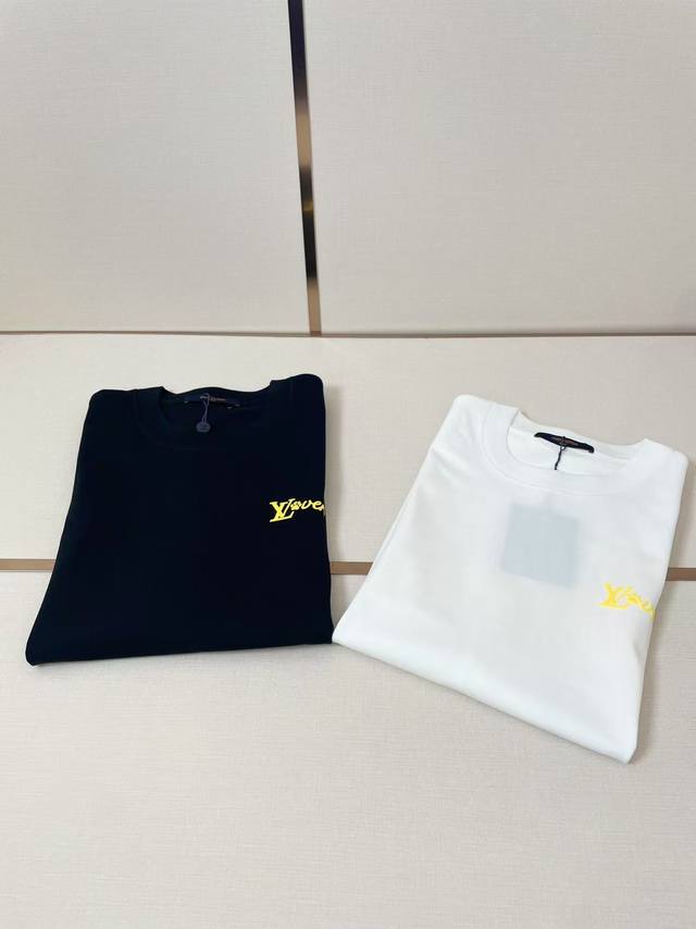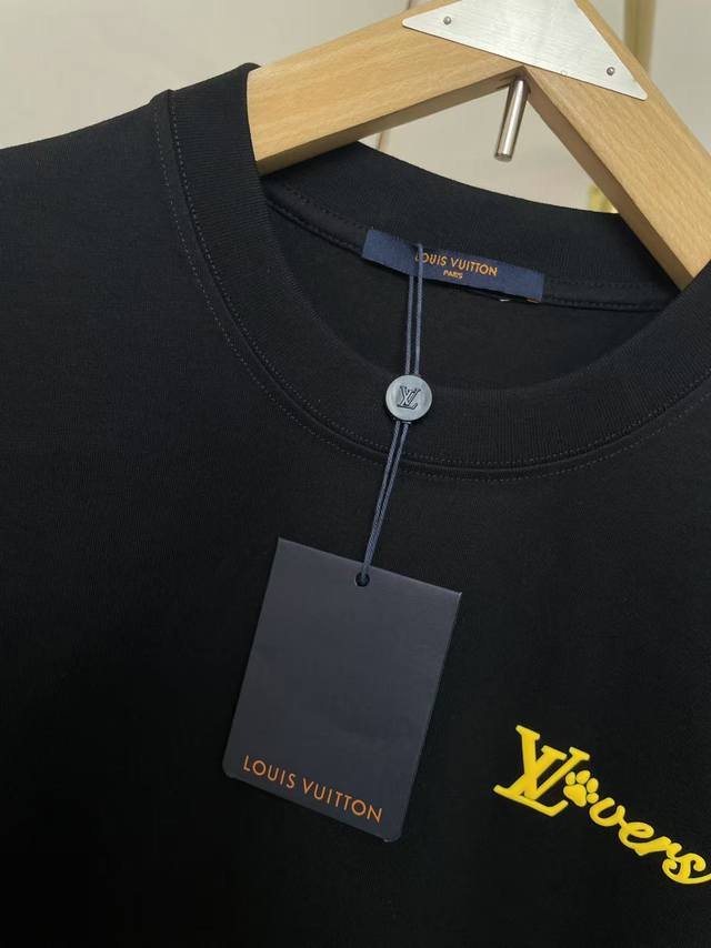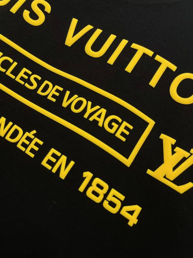 lv2025 New Foam Letter T-Shirt Three-Dimensional Foaming Process Full Of Three-Dimensional Sense Double-Layer Thread Neckline Shoulder Shoulder Stripes 280G Pure Cotton Fabric Black And White Two-Color Unisex Size S-Xxl
