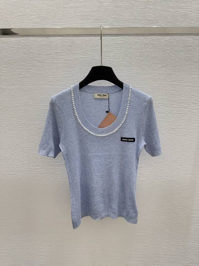 m Early Spring New Round Neck Beaded Knitted Short Sleeve