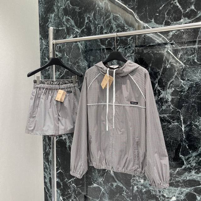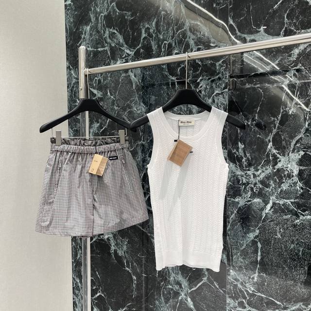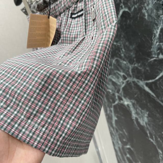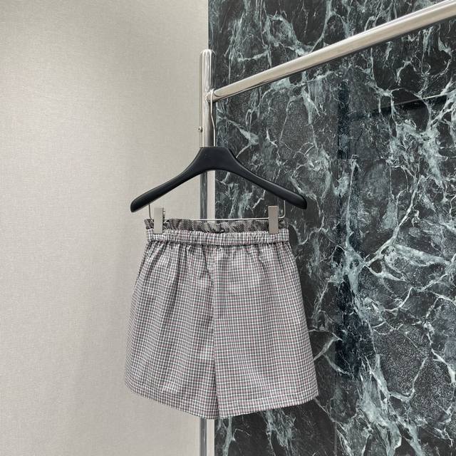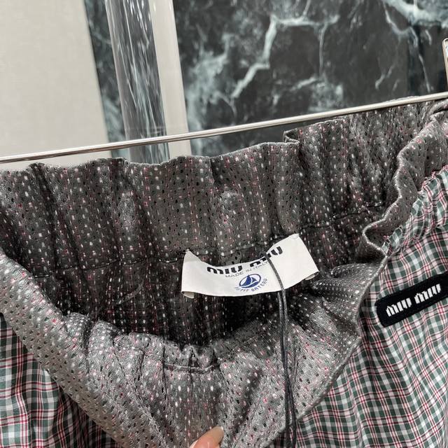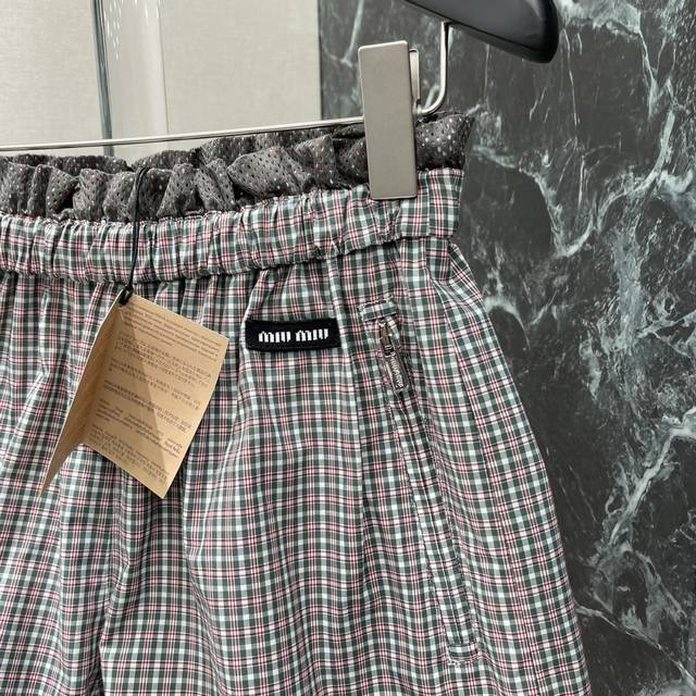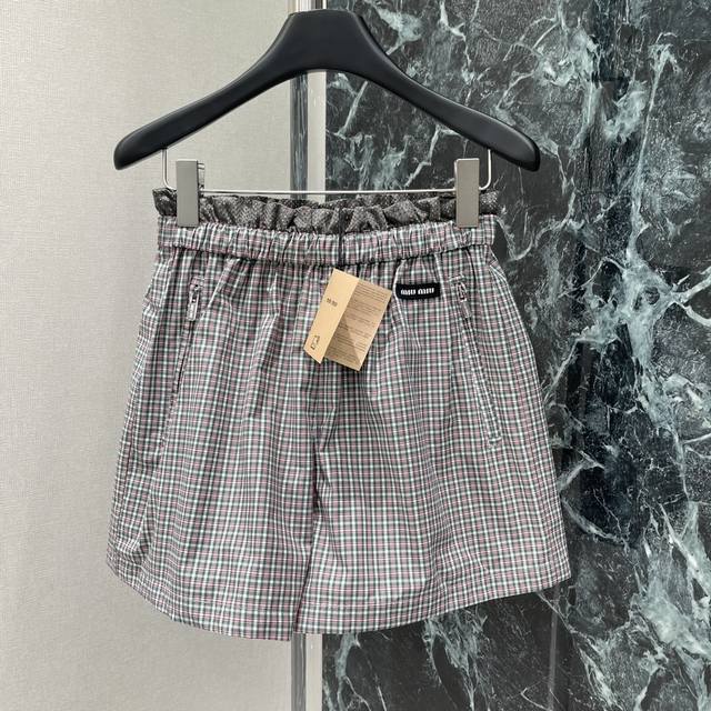 miu 25 Summer New Retro Plaid Flower Waist Pleated Shorts Waist Embroidered L