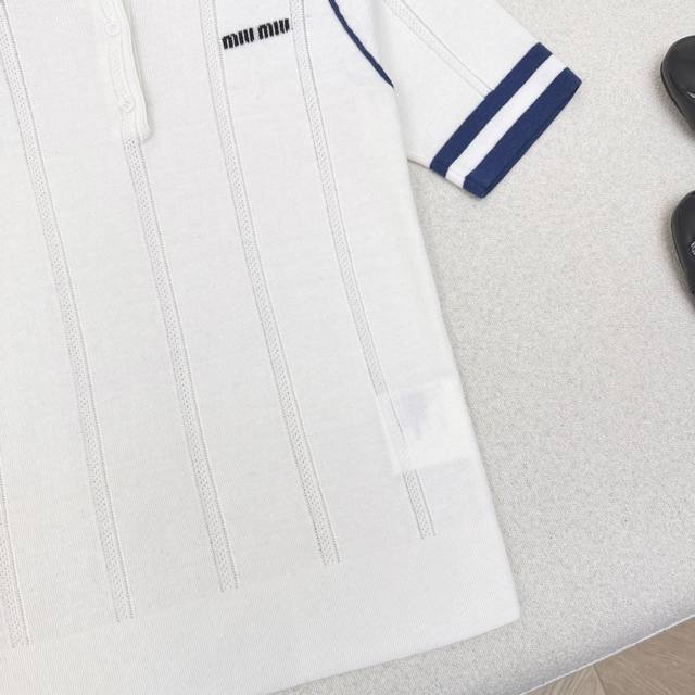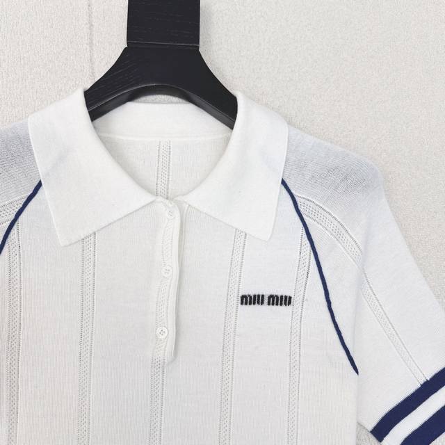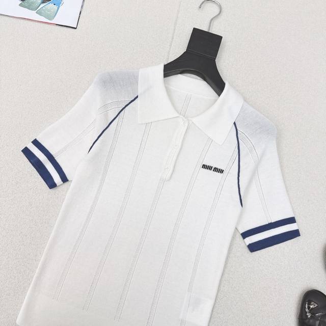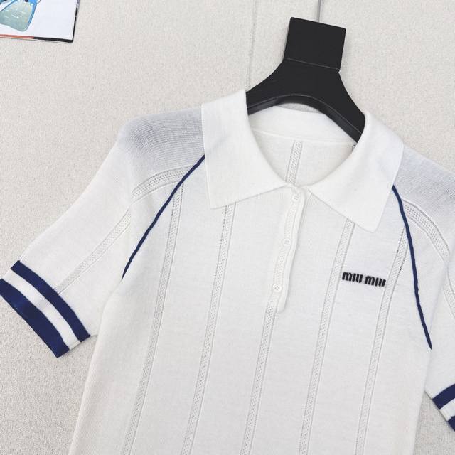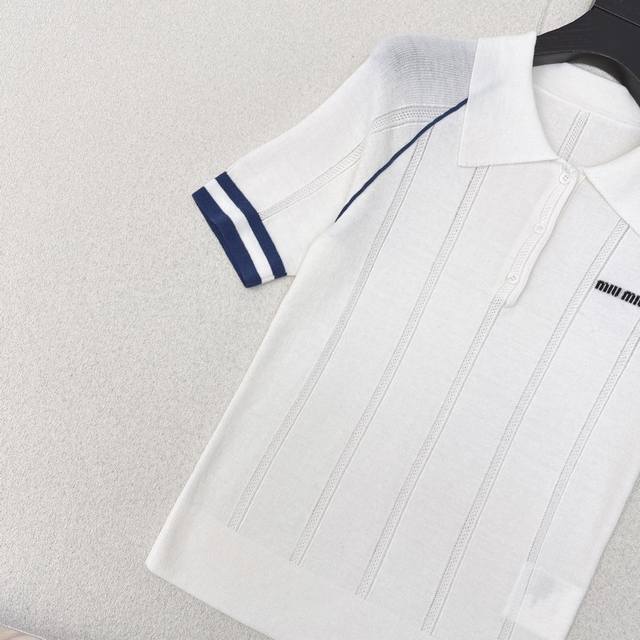 miu 25Ss The Latest Spring And Summer Lapel Sweater, A Must-Have For Everyday Use, A Timeless Fashion Element, Casual Yet High-End Knitted Quality T-Shirt Is Unmatched, Can Be Easily Matched With Jeans For Dating Or Shopping, All In One Color, In Stock For Sale Sml S Size, Bust 80, Length 55, Manual Measurement May Result In Errors