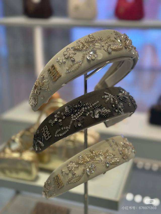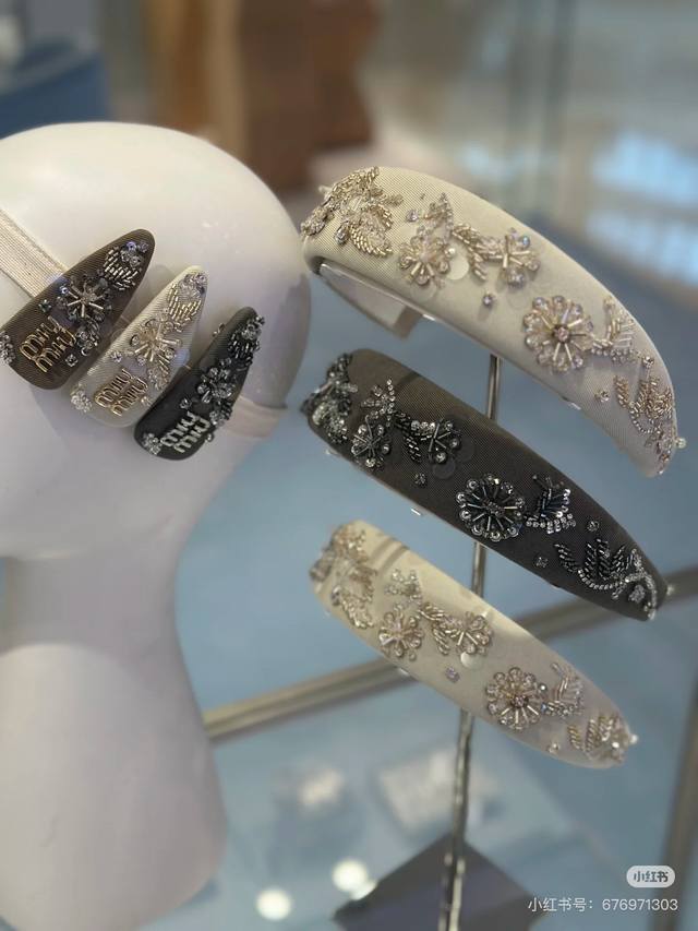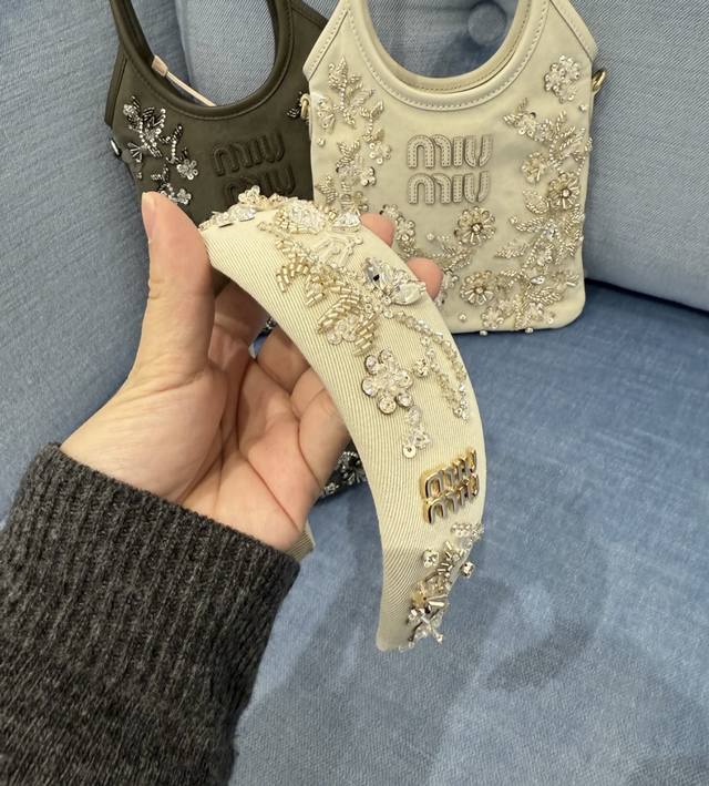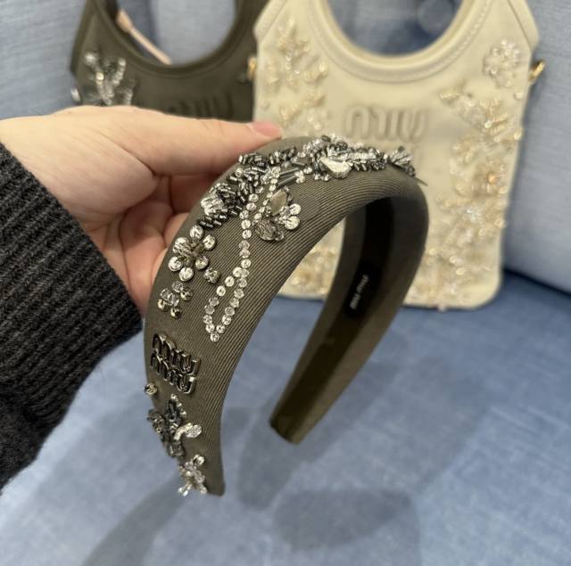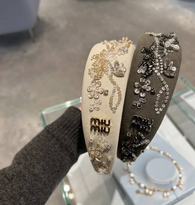 miu Jewelry Hairpin Heavy Model Crystal Glass Diamond Pure Hand-Sewn With Box