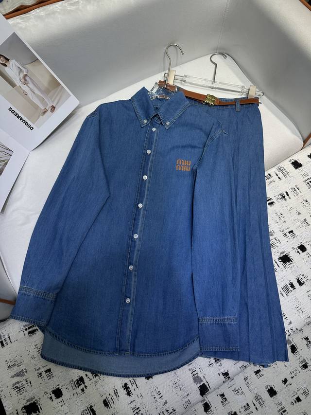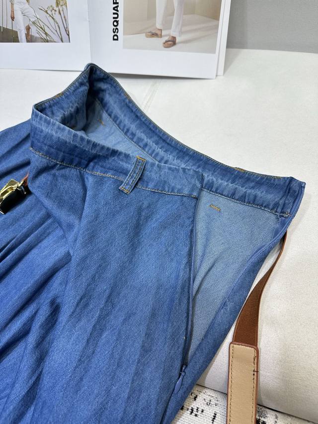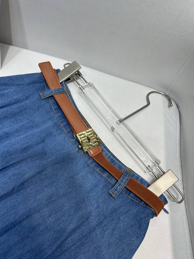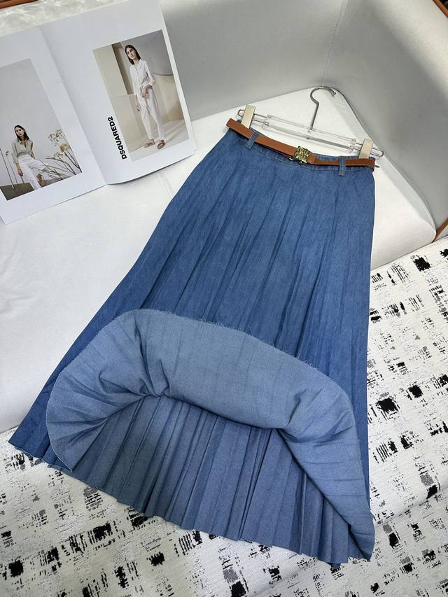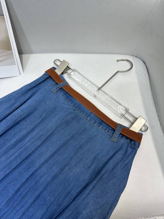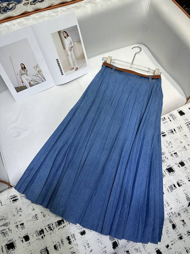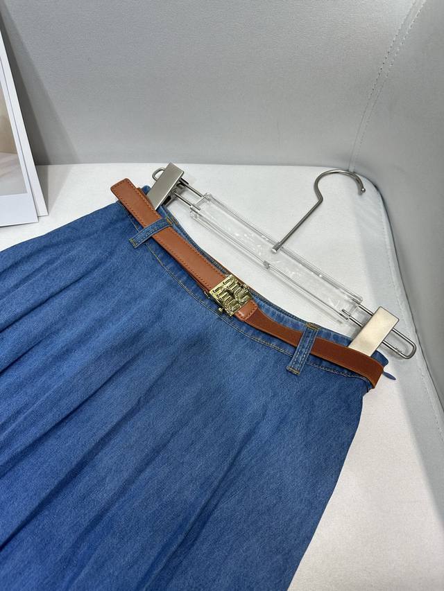 miumi* 25Ss New Denim Pleated Skirt With Belt Decoration Simple And Elegant All-Match Style High Quality Single Color Three Sizes Sml