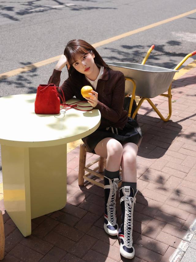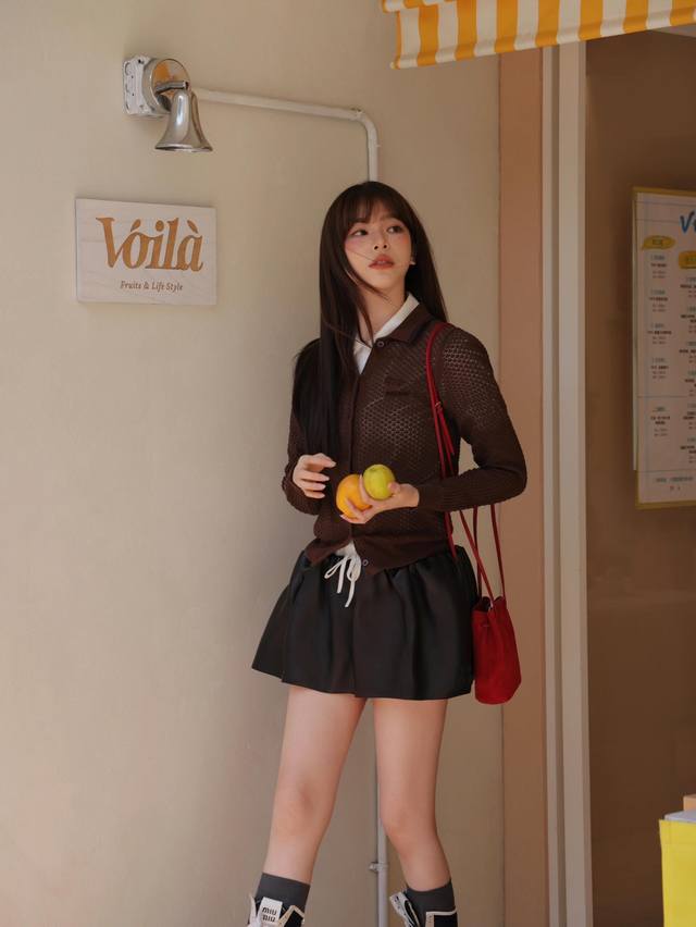 miumi* 25Ss Spring And Summer New Diamond-Shaped Hollow Polo Collar Knitted C