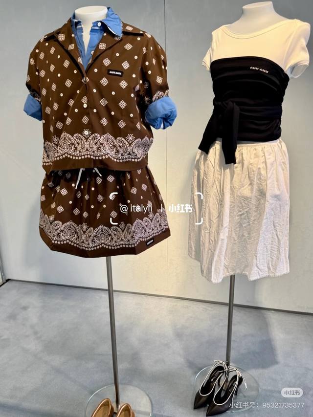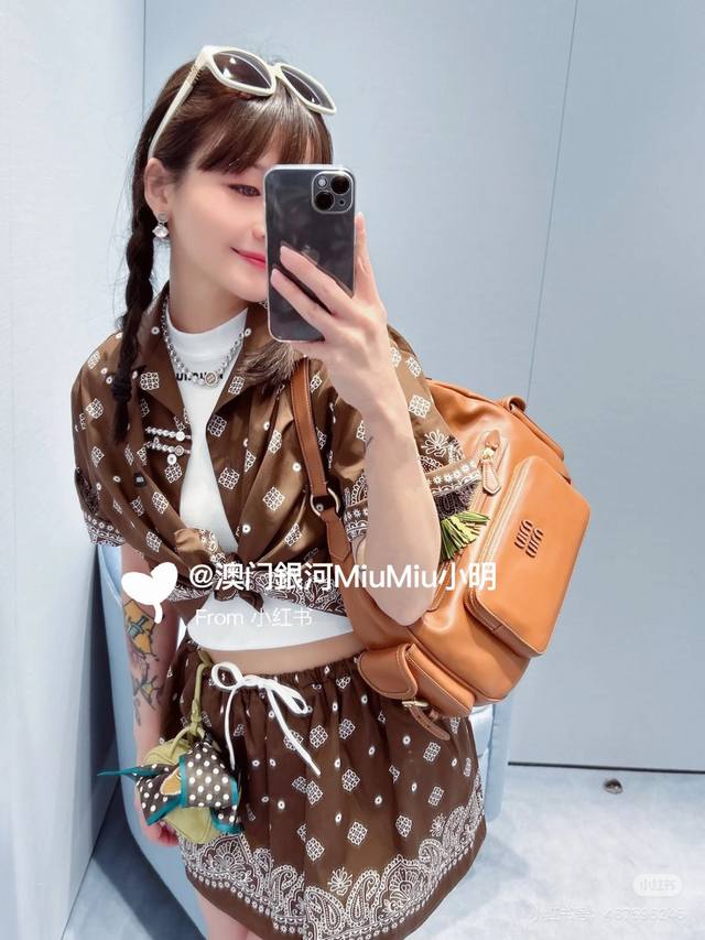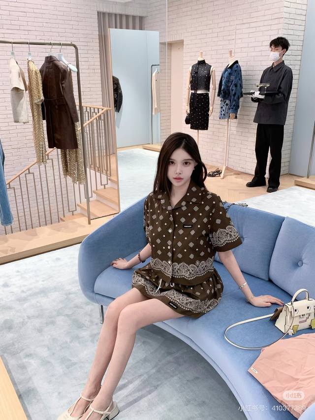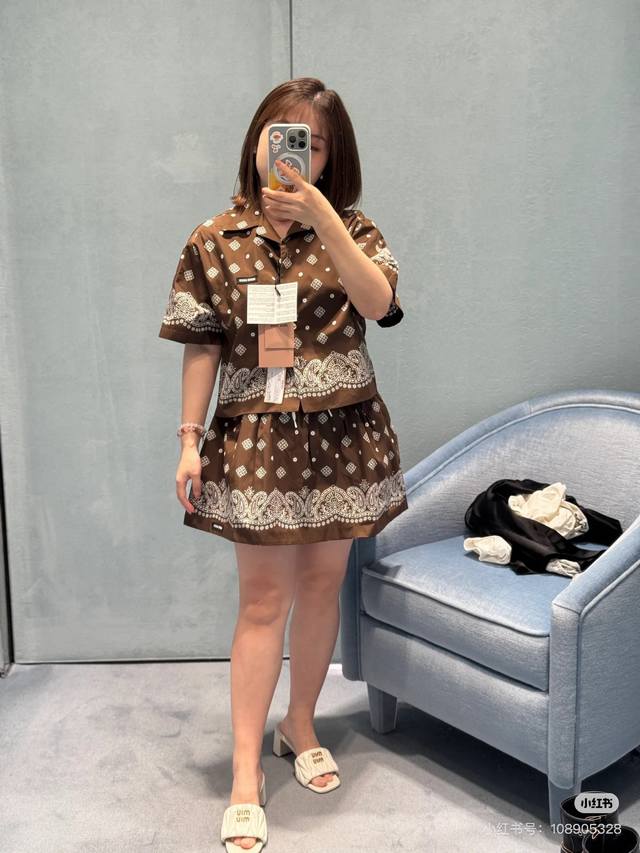 miumi* 25Ss Spring And Summer New Holiday Style Temperament Printed Shirt Ori