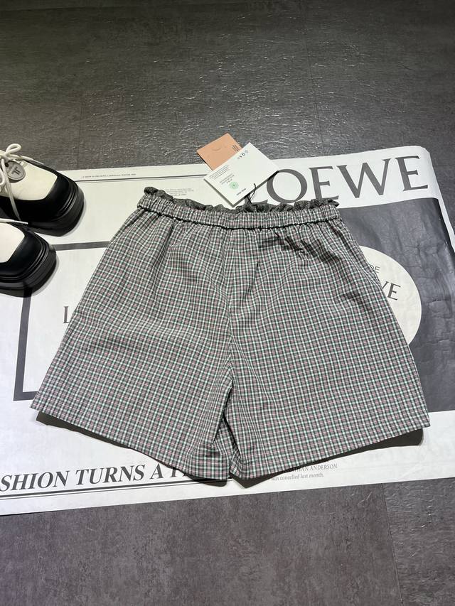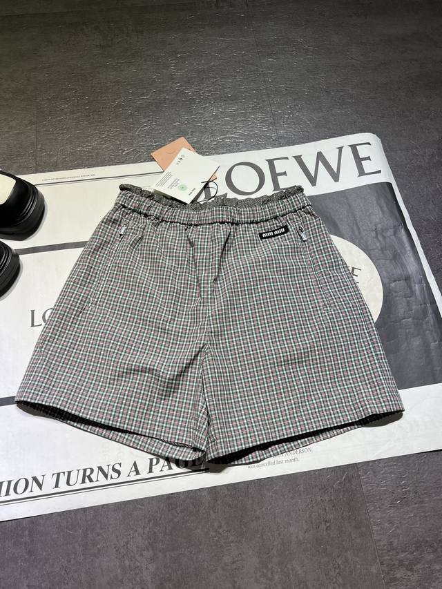 miumi* 25Ss Spring And Summer New Retro Plaid Flower Waist Pleated Shorts | Exclusive Yb Development High Version Product Waist Embroidered Letter Logo Label Low-Key Luxury Custom Made Pure Cotton Material Soft And Delicate Texture Super Classic Version The Upper Body Is Very Slim Can Be Sweet Or Salty Temperament Reduces Age Girlish Style Versatile And Not Picky The Inner Lining Is In Line With The Breathable Mesh Workmanship Quality Depends On The Details In Stock Sml