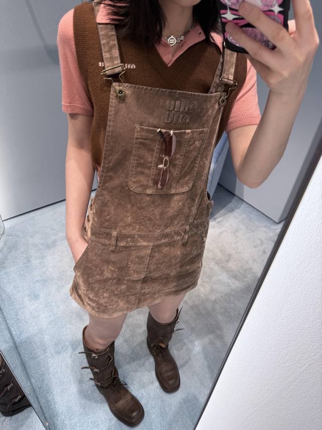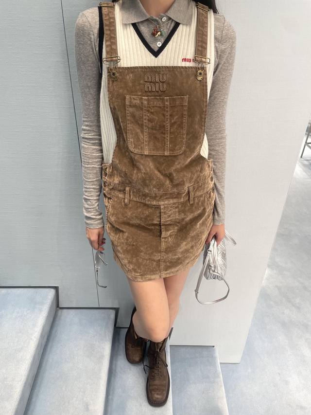 miumi* 25Ss Spring And Summer New Workwear Style Letter Embroidered Velvet Suspender Skirt | Exclusive Yb Development High Version Made Of Imported Velvet Fabric, Soft, Delicate And Comfortable Washed And Distressed Effect Full Of Retro Charm Metal Buckle And Pocket Details Are Exquisite And Practical Adjustable Straps To Suit Different Body Shapes Wear With A Simple T-Shirt Or A Sweet Lace Top To Create A Unique Spark And Easily Create An Eye-Catching Street Style Available Now Sml